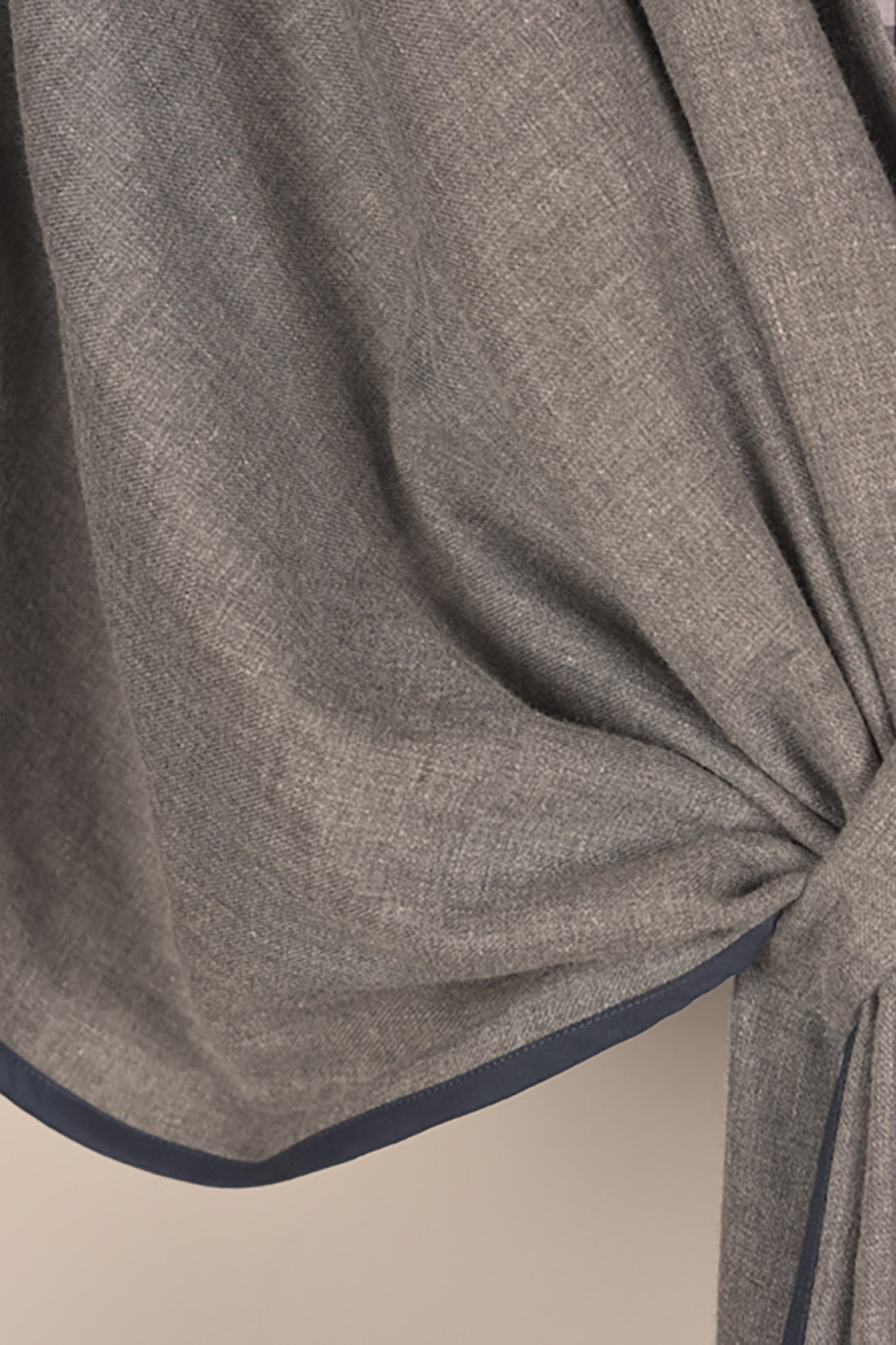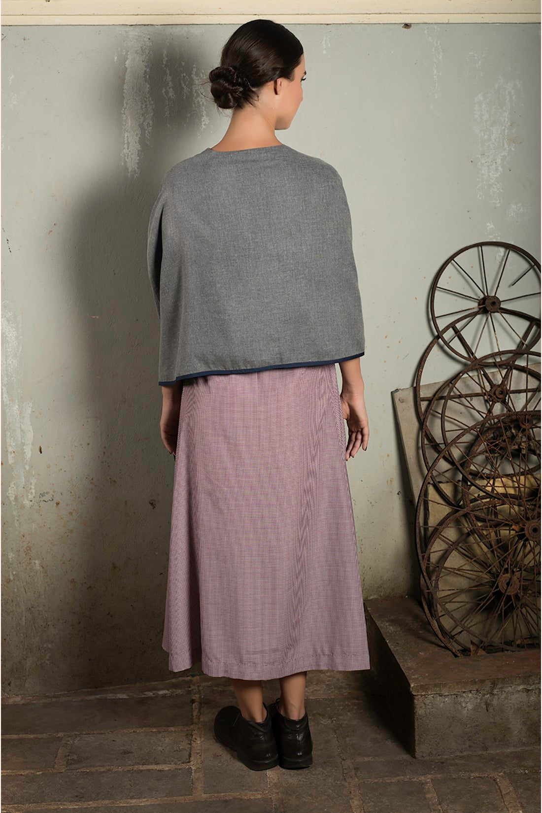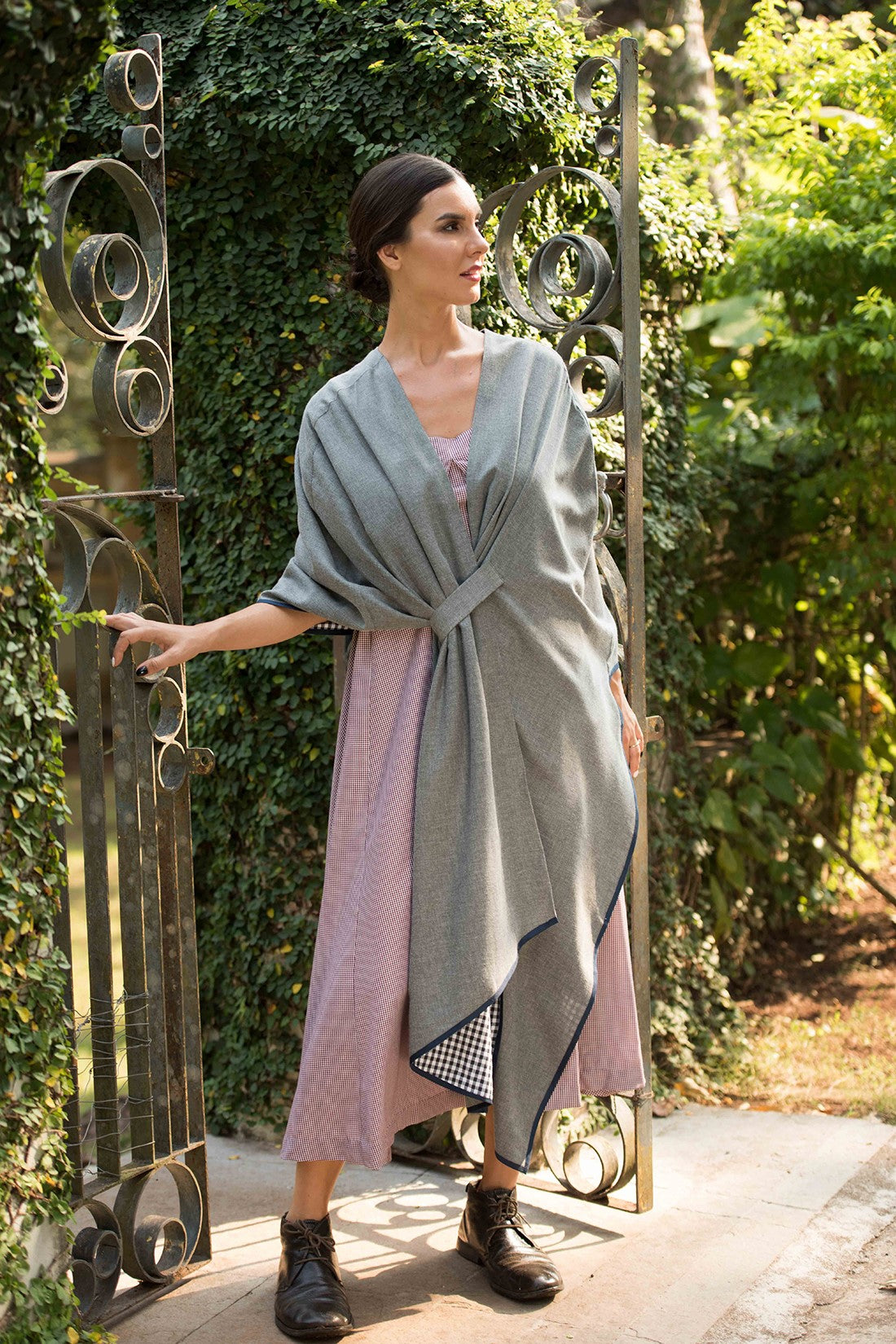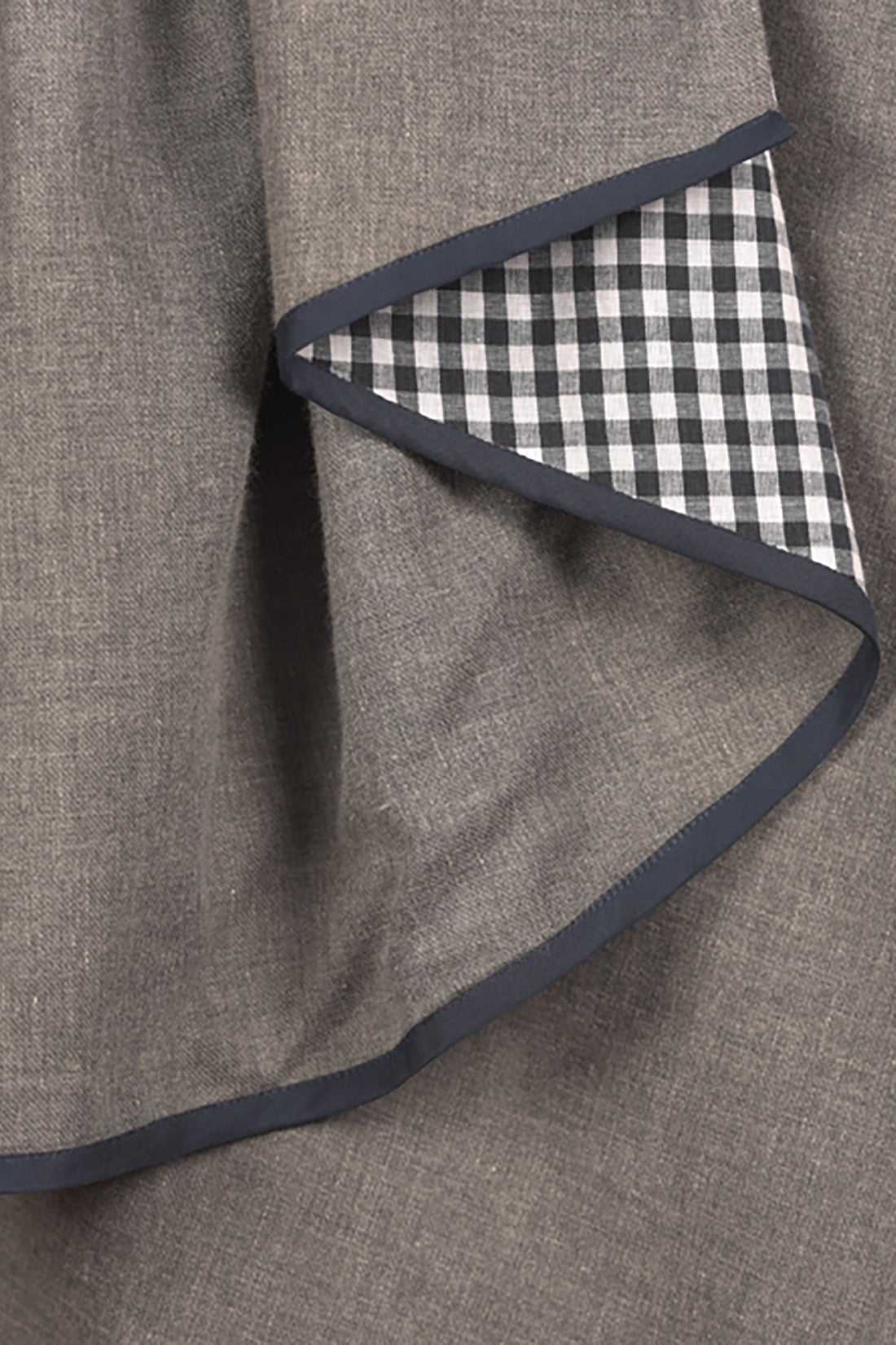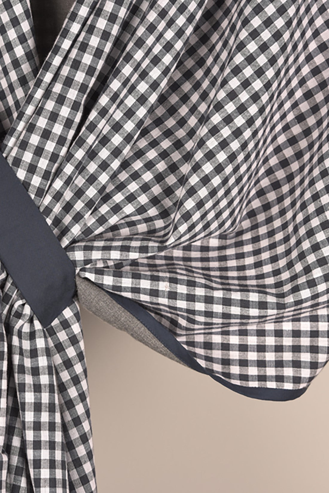 • Single colour fabric on one side and check facing fabric on the other side. Three quarter length folded sleeves