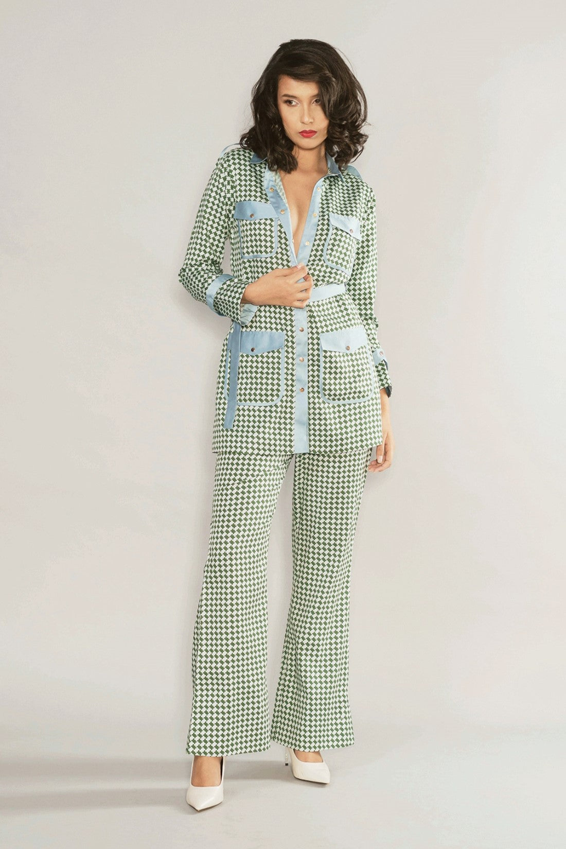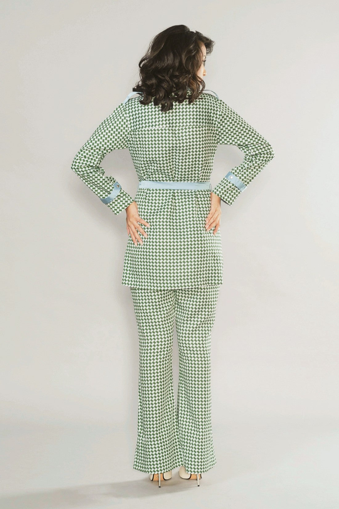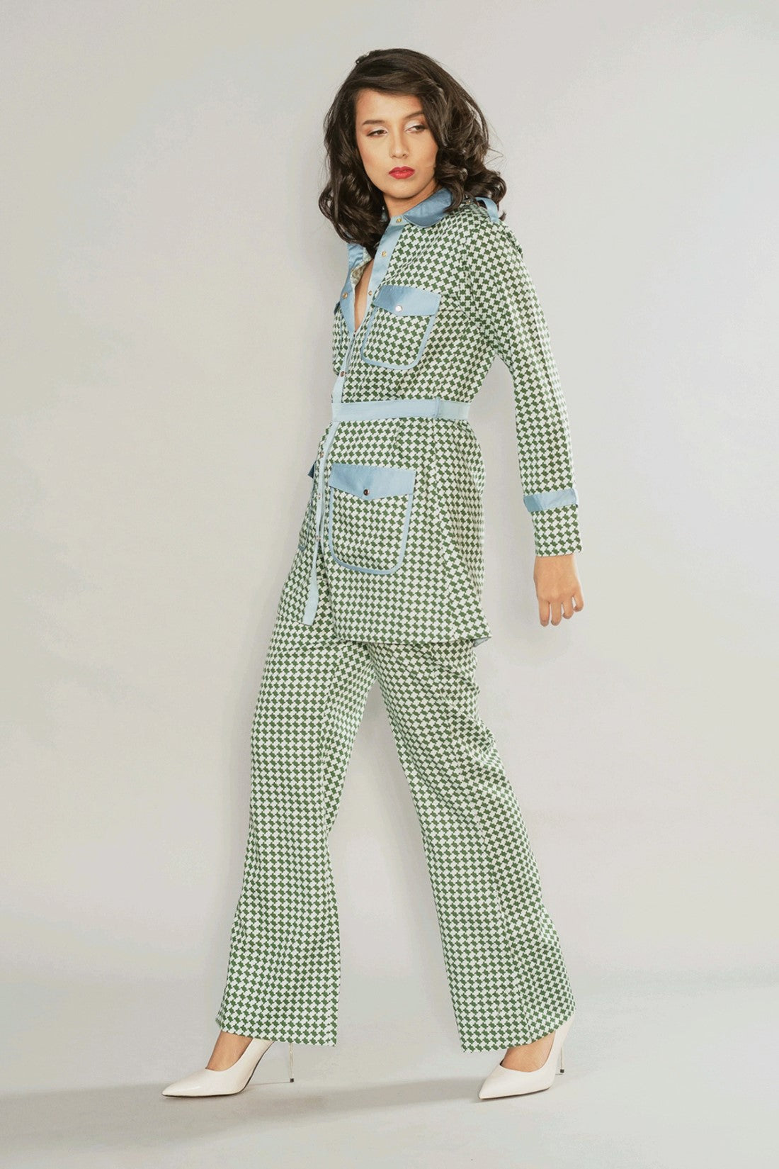 Trousers in vintage print with front satin-line pockets. A must-have for the fashion-forward, pair it with matching shirt for a smart yet ethereal vibe.