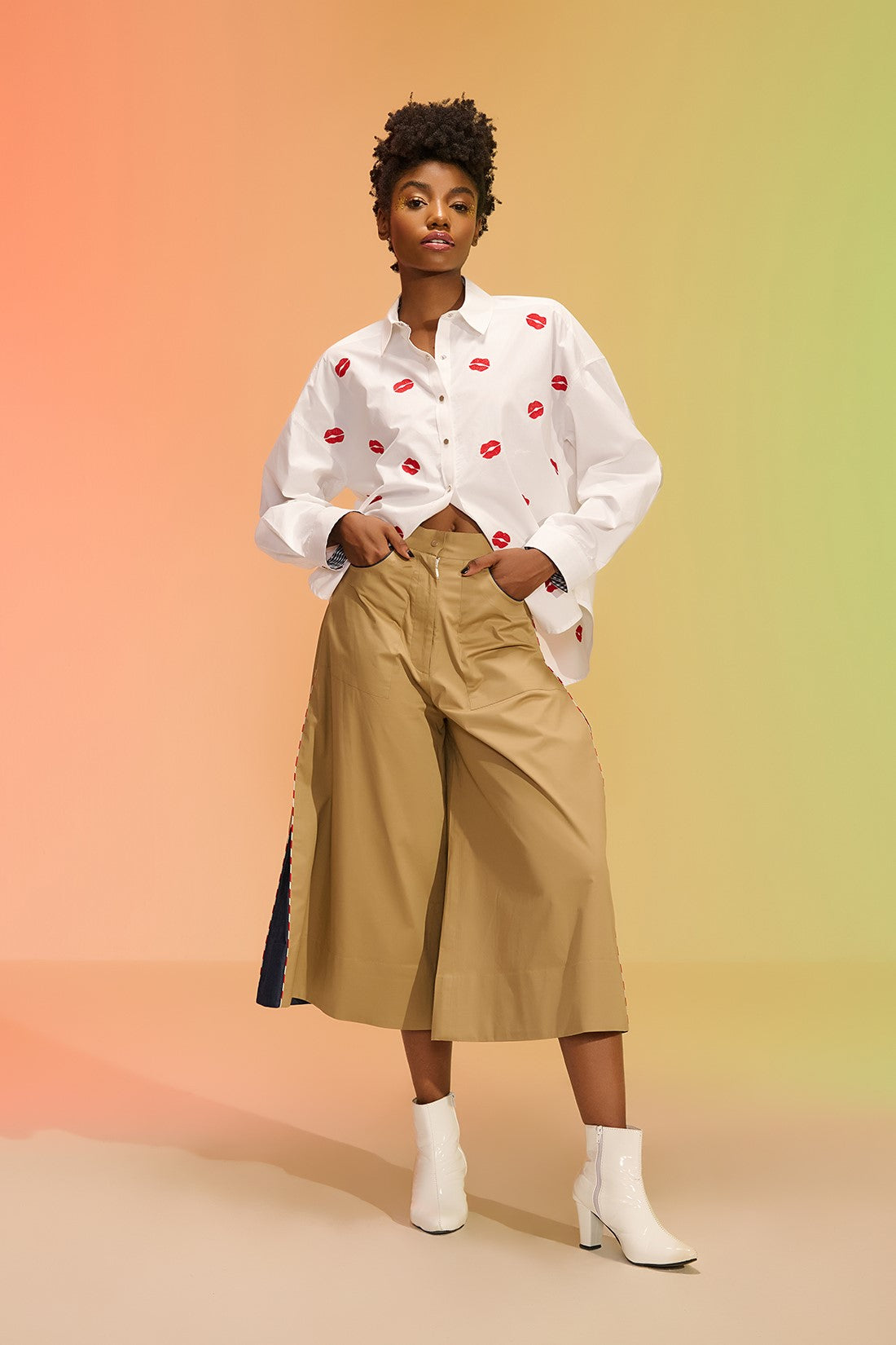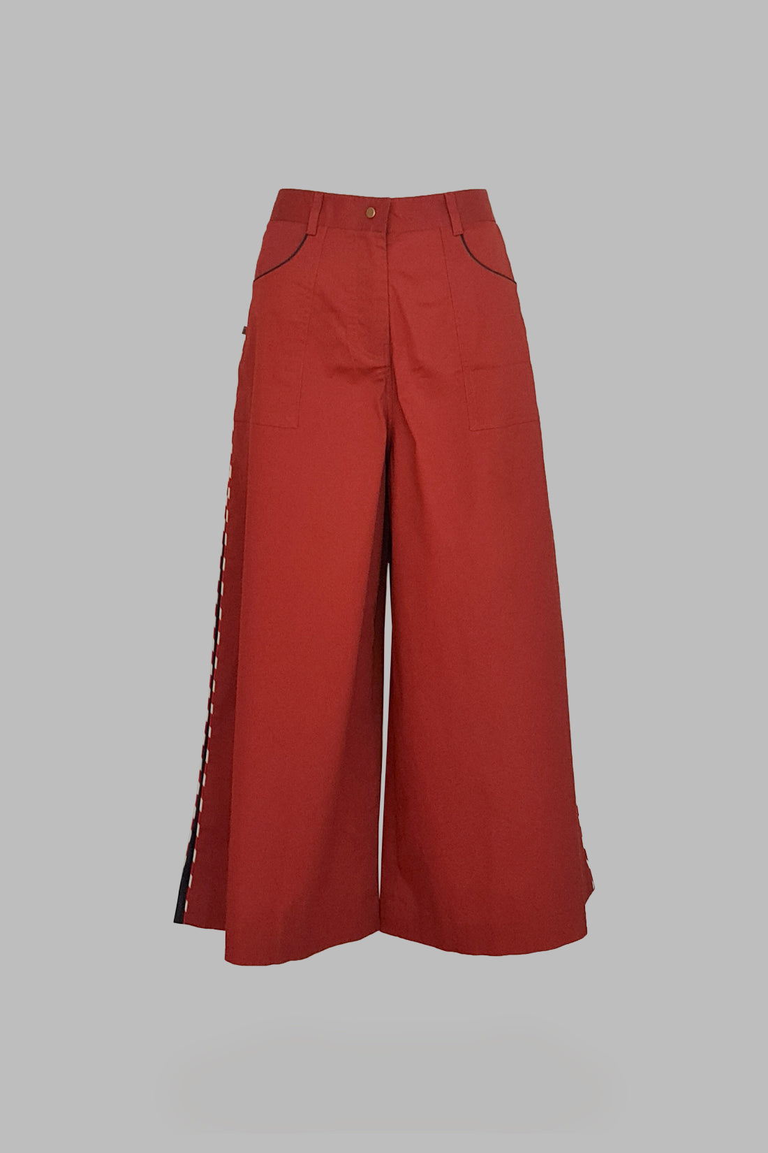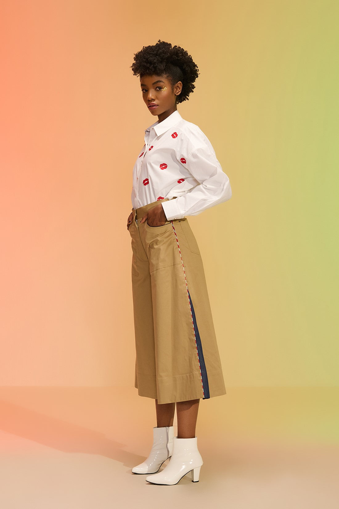 These calf-length trousers are a chic and retro-inspired addition to any wardrobe. They offer a flattering silhouette and can be styled with our poplin shirts.