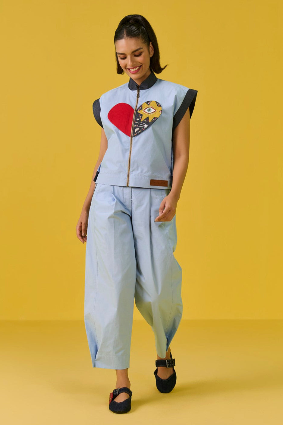 These above-ankle length trousers offer a relaxed fit, making a statement while keeping things effortlessly cool. They feature an eye-catching bottle cap and rivet detailing at the hem, adding a bold, edgy finish to a sleek silhouette. Pair these trousers with our Bean top to complete your look.