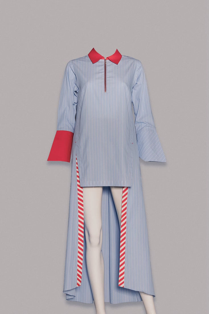 Colour : LIGHT BLUE PIN STRIPE & RED