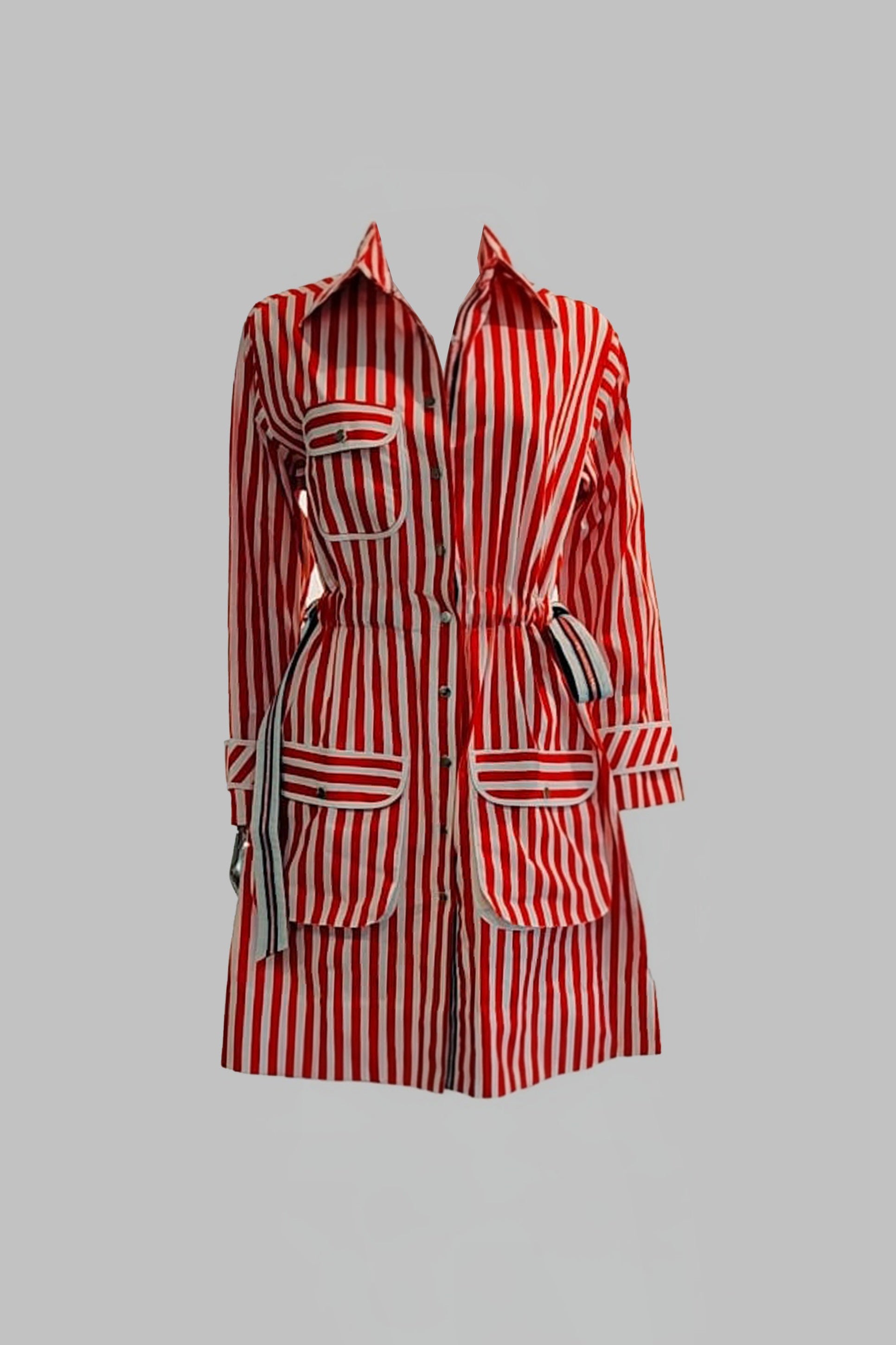 Jacket Shirtdress in Breton Stripe, with front pocket, gold buttons and ribbon tie on the waist. Length can be customised to be worn as a dress or pair it with 𝖱𝖠𝖸 Shorts for a smart coord set.
