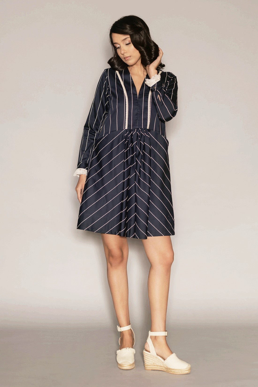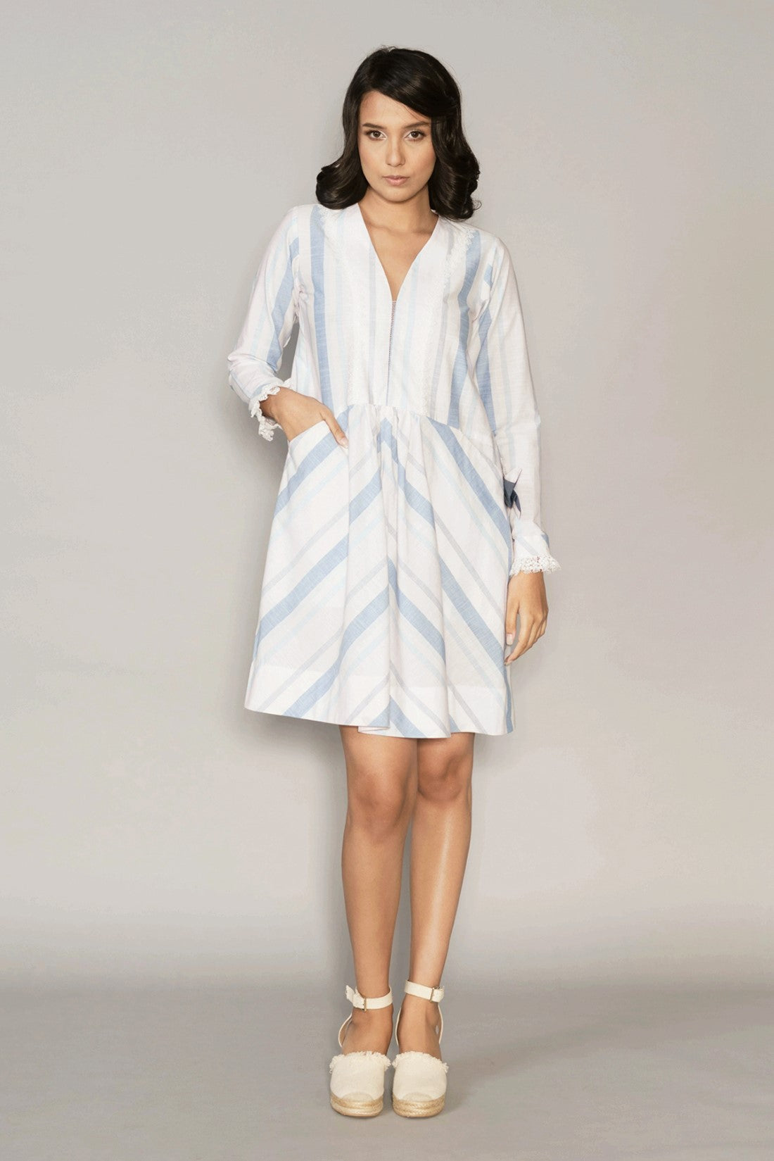 • Long sleeves with laced cuffs