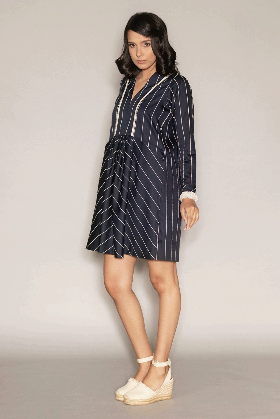 • V neck with lace applique on the side