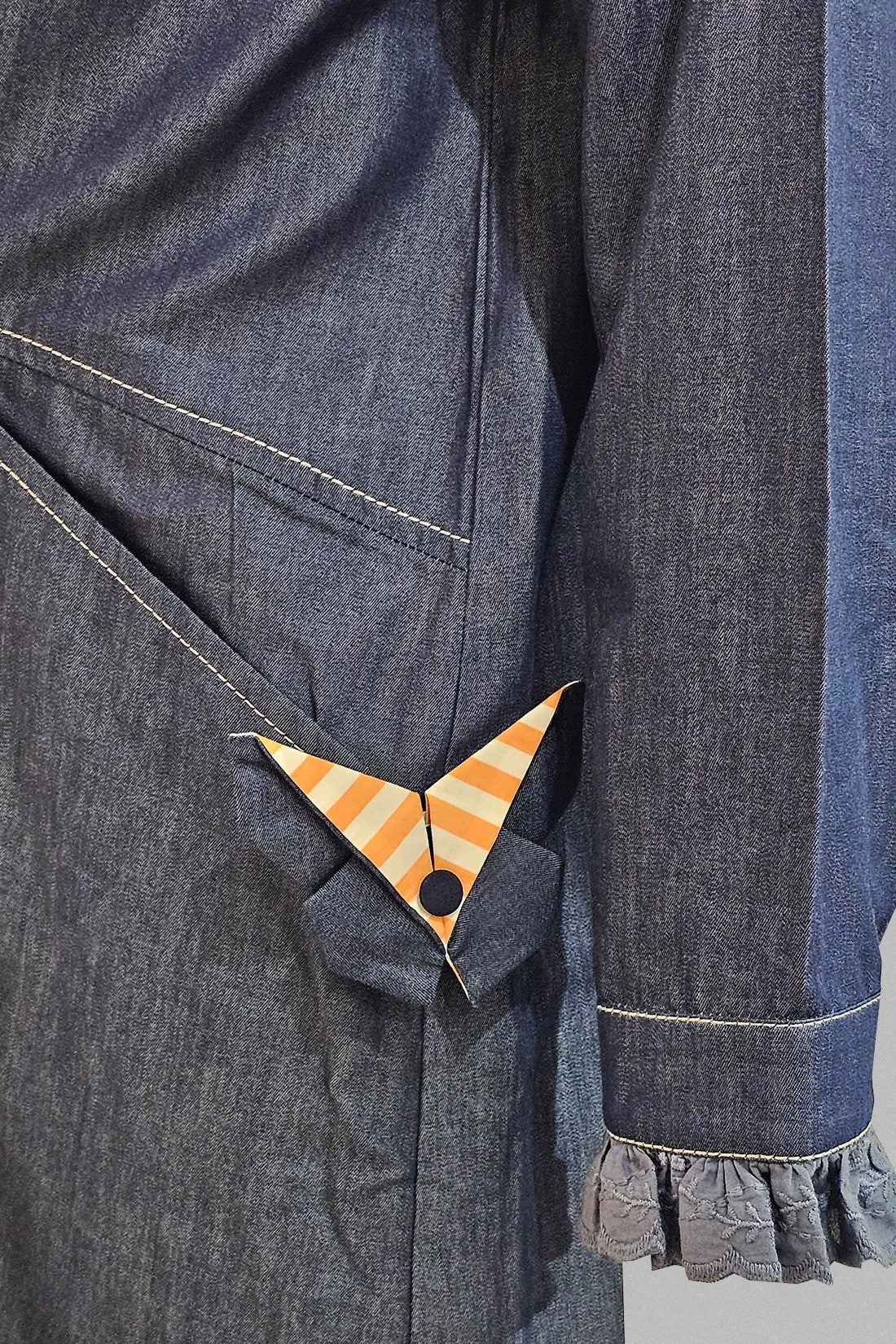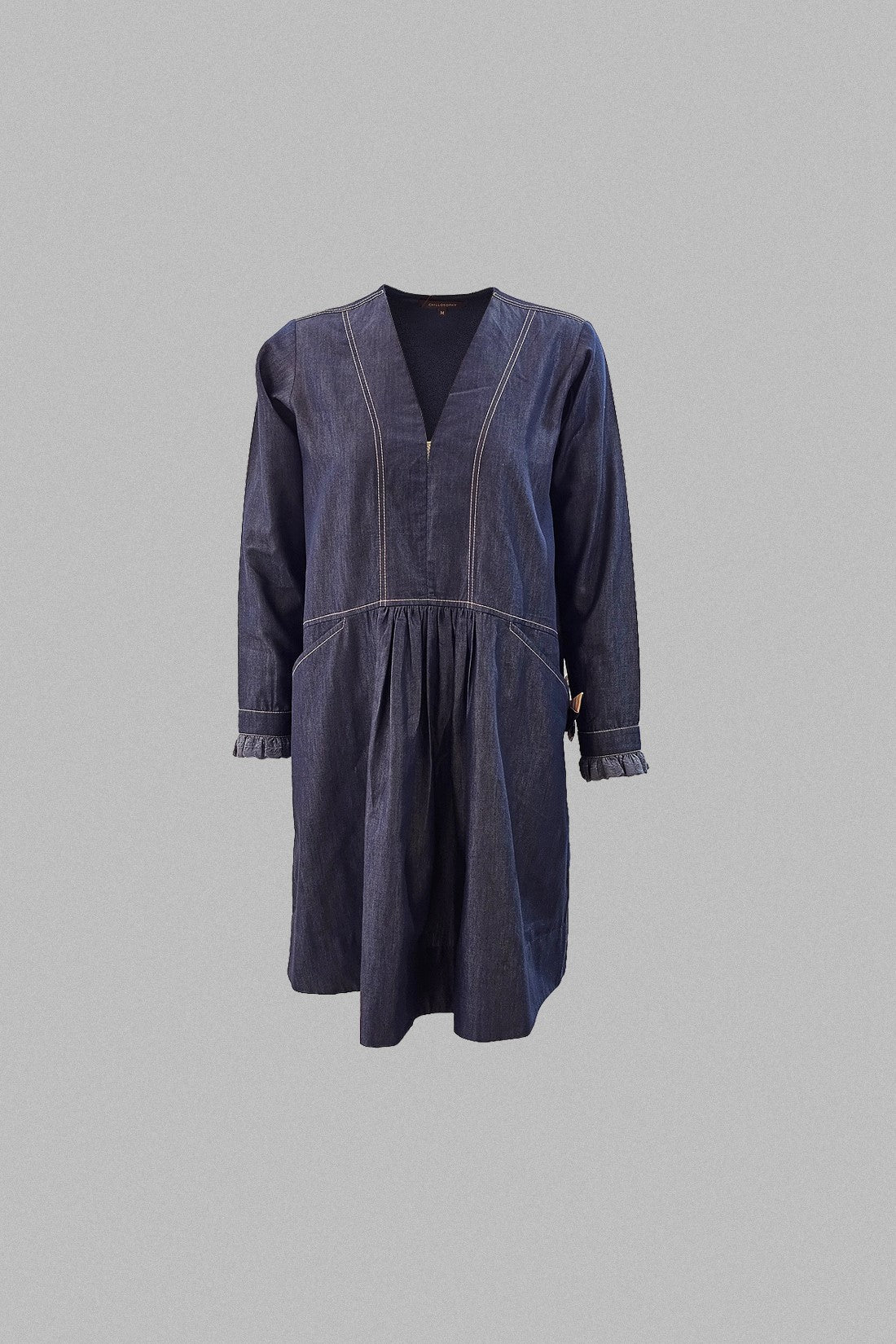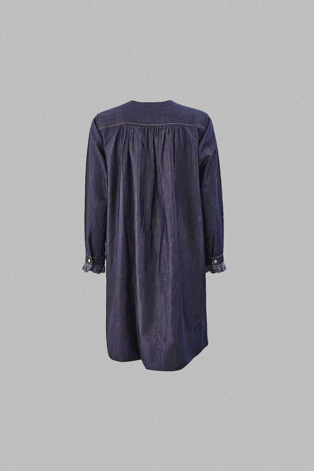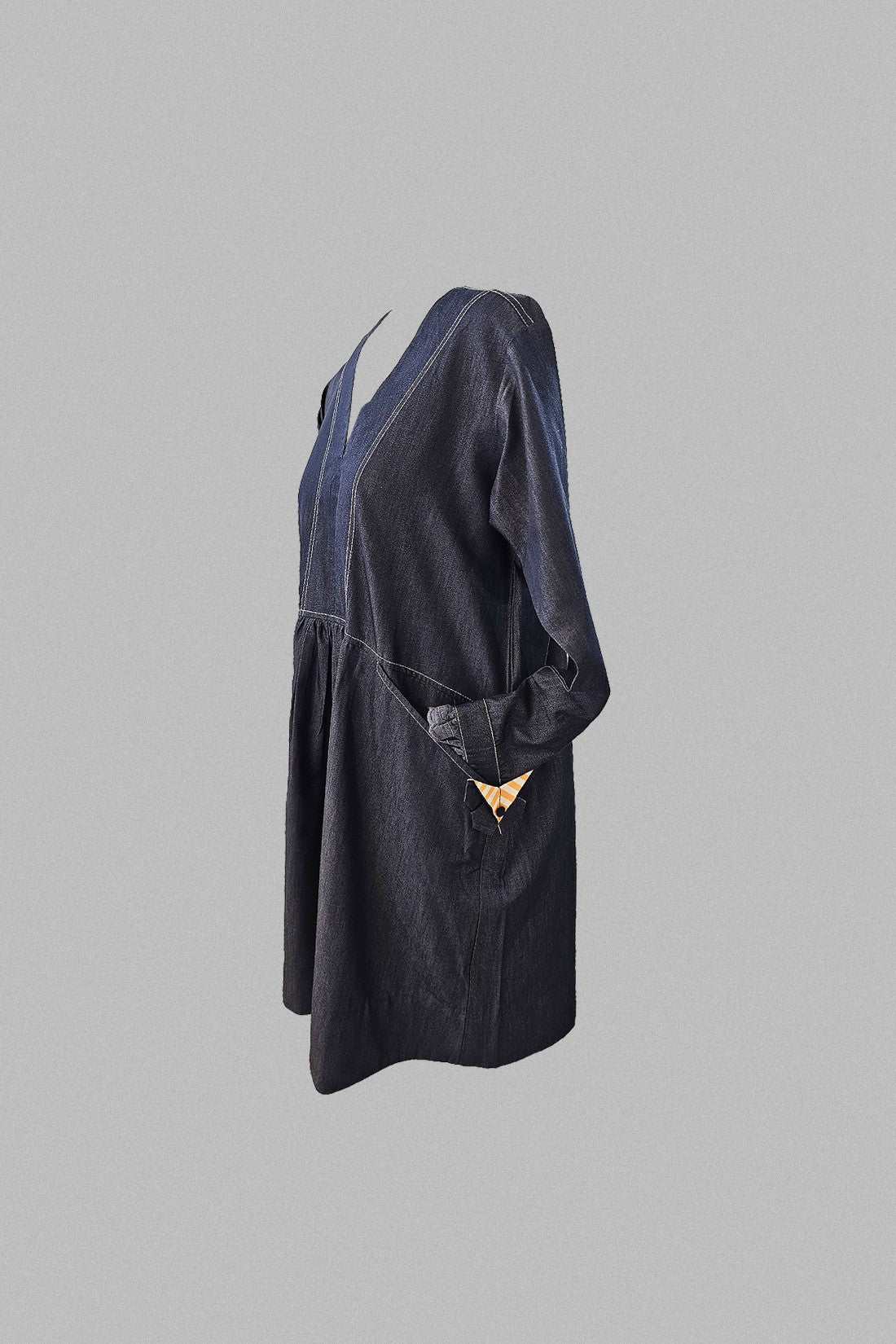 A denim kaftan made to slip on and take out. Timeless simplicity, with deep pockets for hands to sink into. Relaxed, but always together.