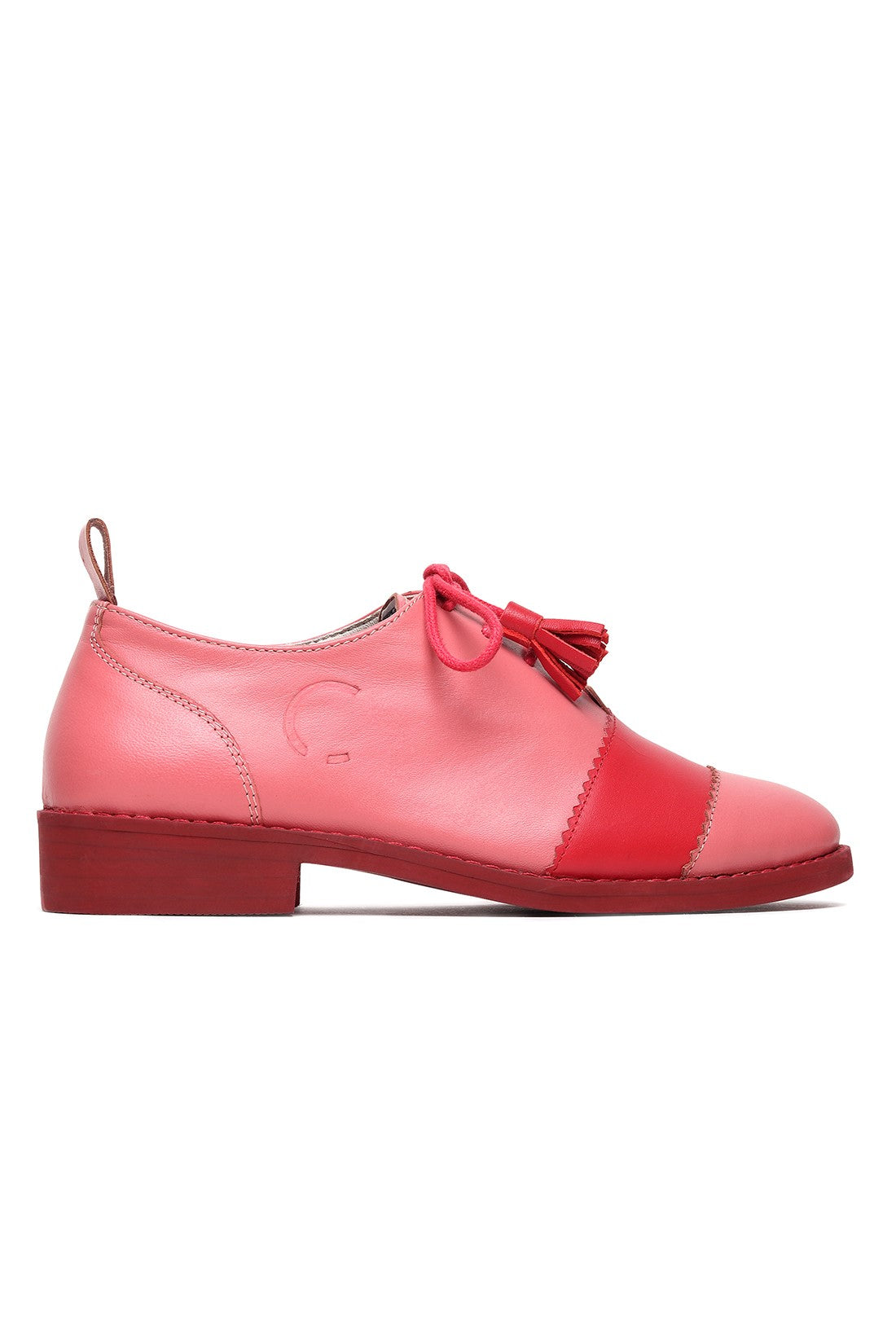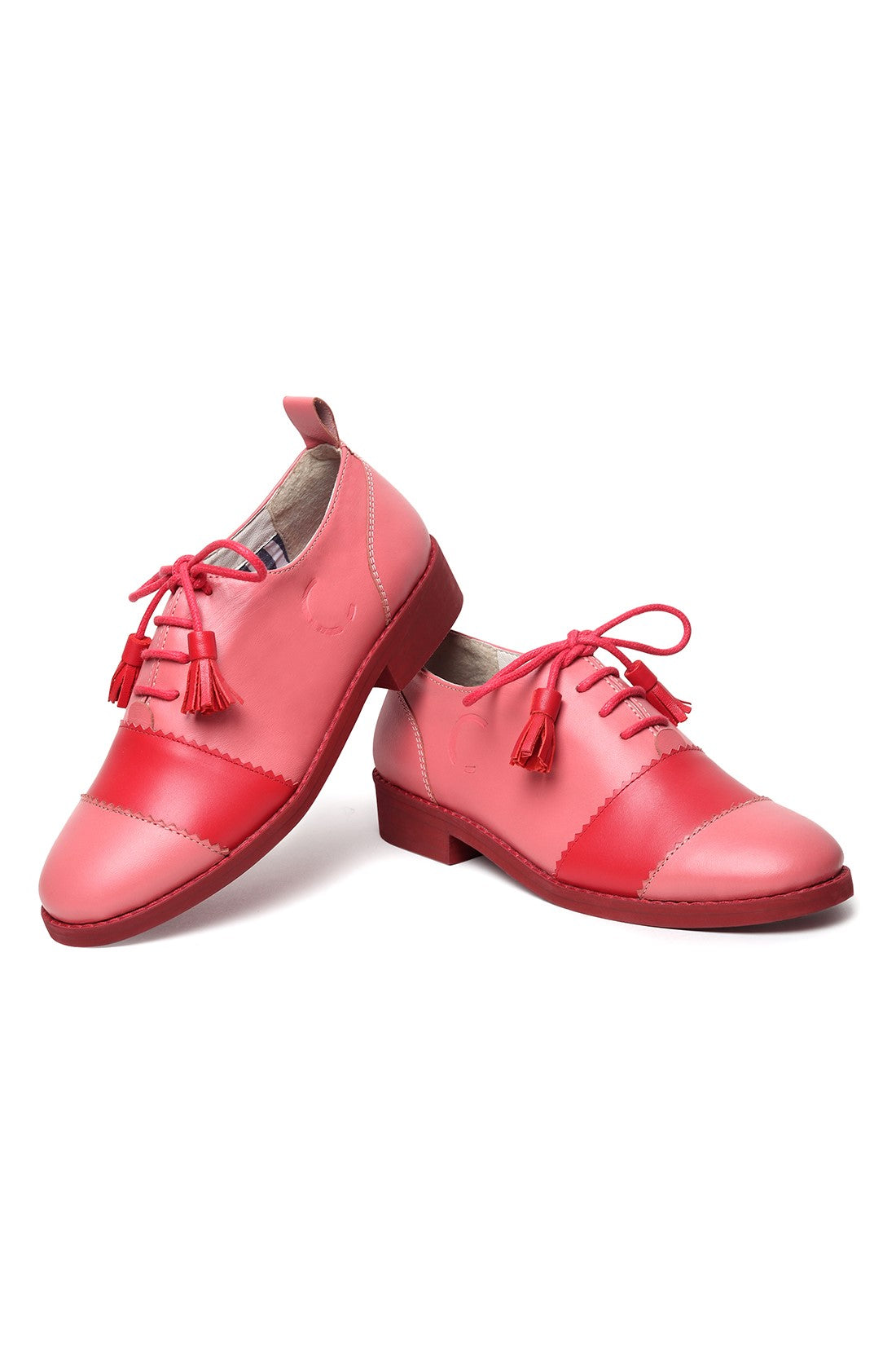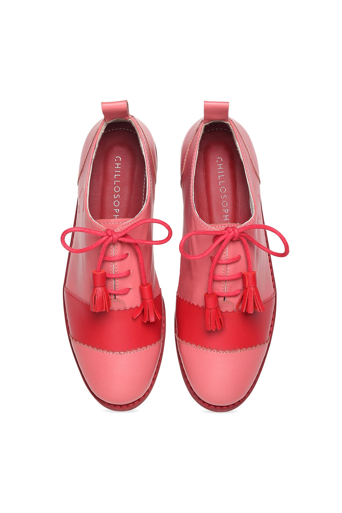Playful yet polished, these lace-up shoes feature a soft pink upper with bold red contrast panels and tassel lace detailing. Finished with a comfortable low heel and clean silhouette, they bring a pop of colour and Chillosophy’s signature quirk to everyday dressing.