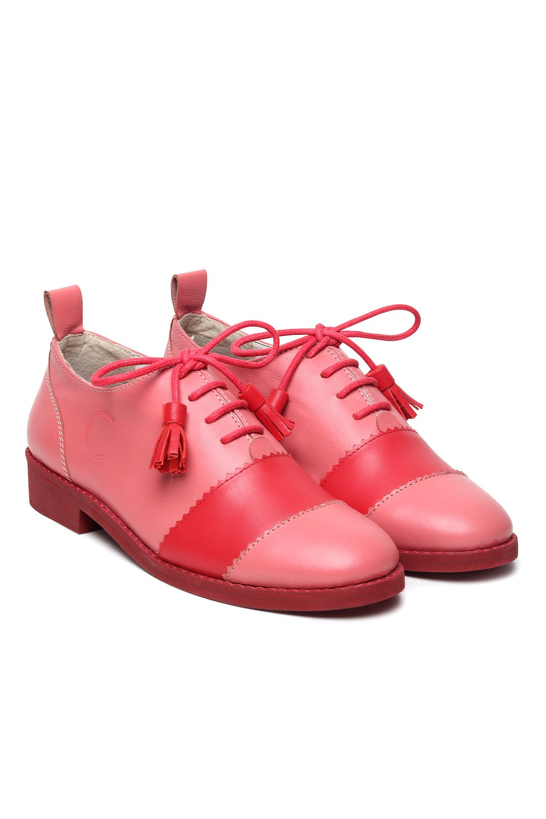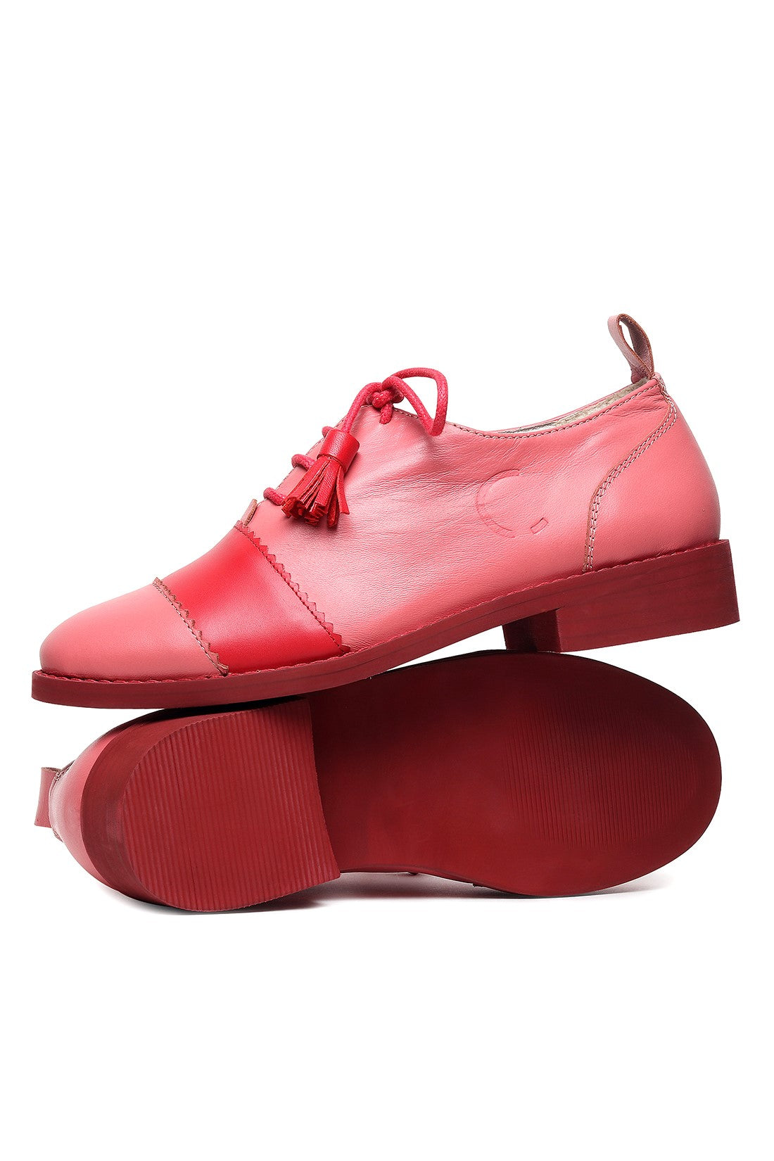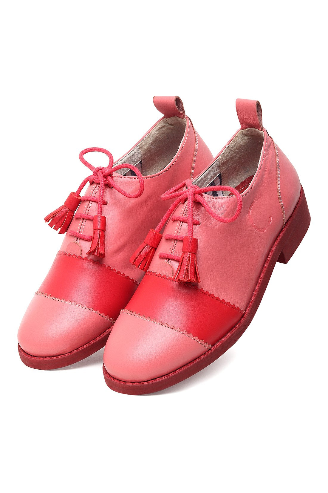 Playful yet polished, these lace-up shoes feature a soft pink upper with bold red contrast panels and tassel lace detailing. Finished with a comfortable low heel and clean silhouette, they bring a pop of colour and Chillosophy’s signature quirk to everyday dressing.