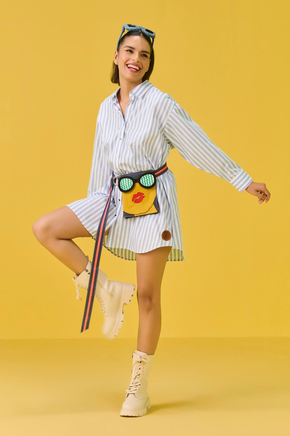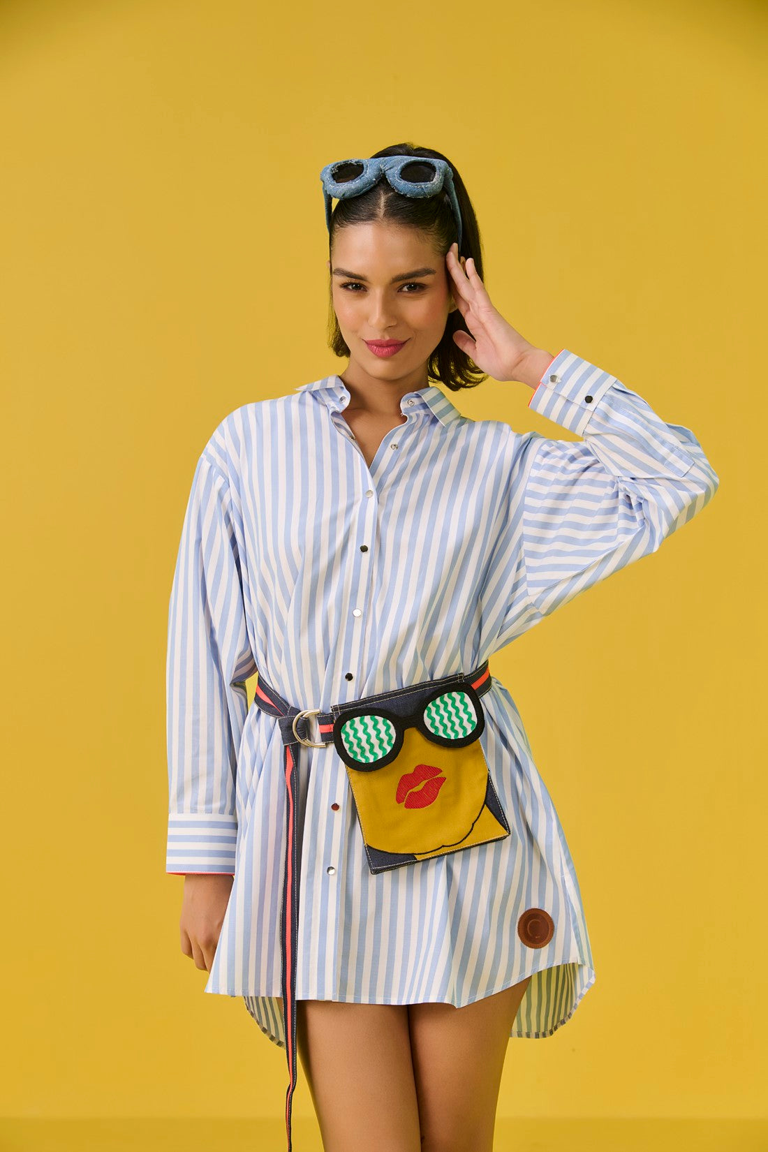 Meet your new wardrobe BFF: the short shirtdress with a twist! This flirty little number gives a cheeky upgrade to the classic shirtdress with a quirky, totally unique waist belt bag that is equal parts fashion and function. Whether you’re twirling into brunch or strutting through the city, this dress is a 100% conversation starter.