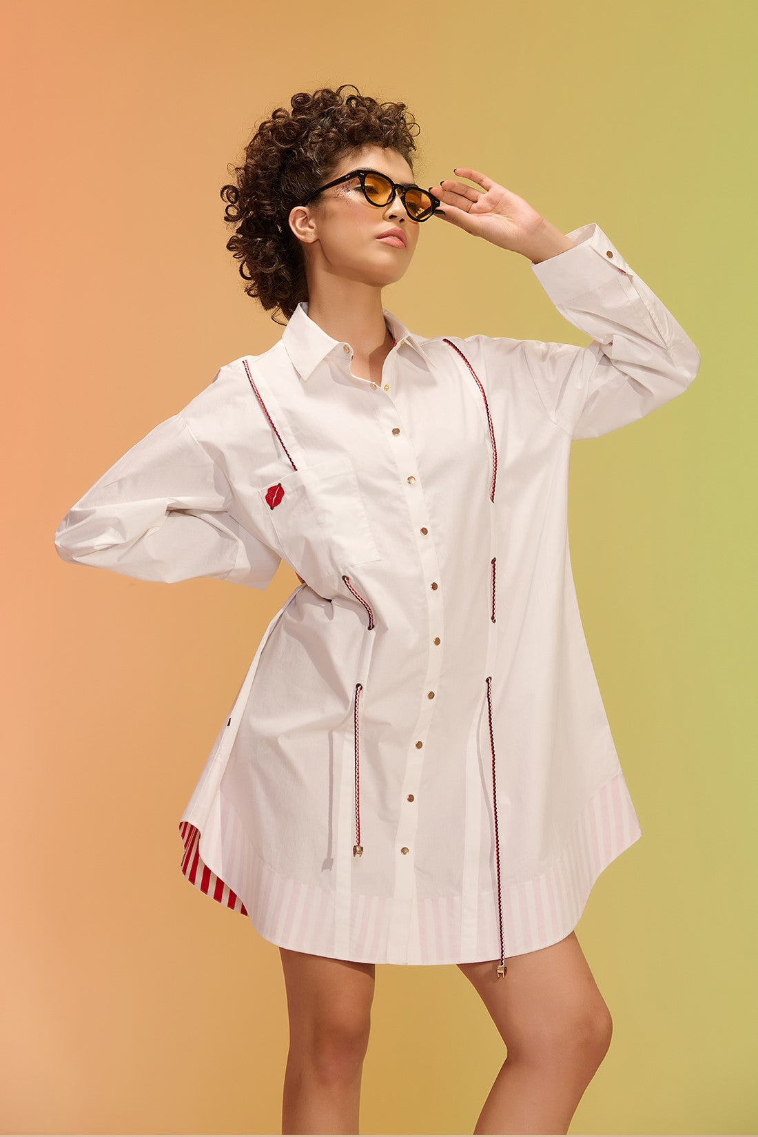 This shirt dress is flamboyant and iconic in style, true to it’s name. The shirt features elements like metallic accents, quirky embroidery and lace detailing that reflects glamour.