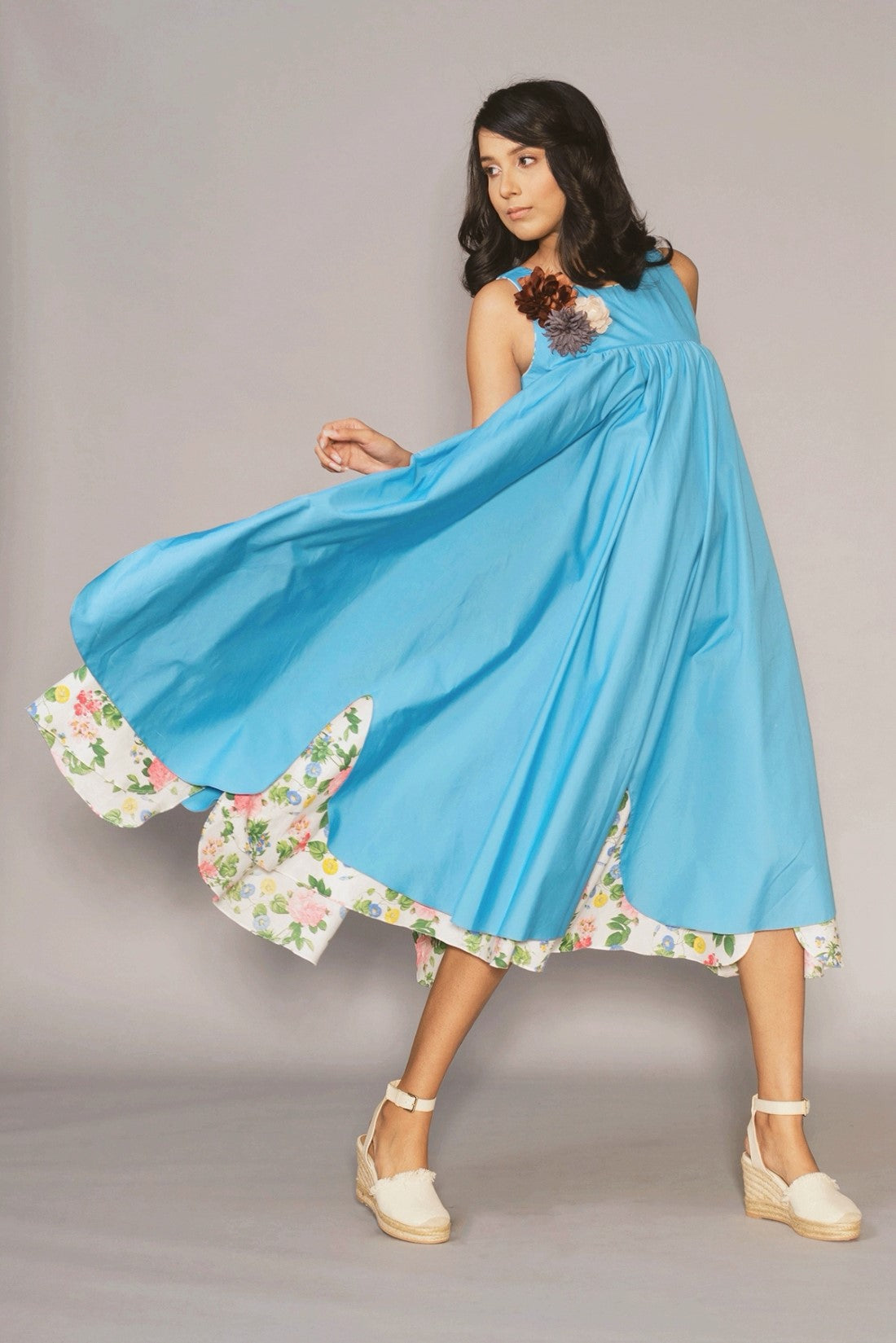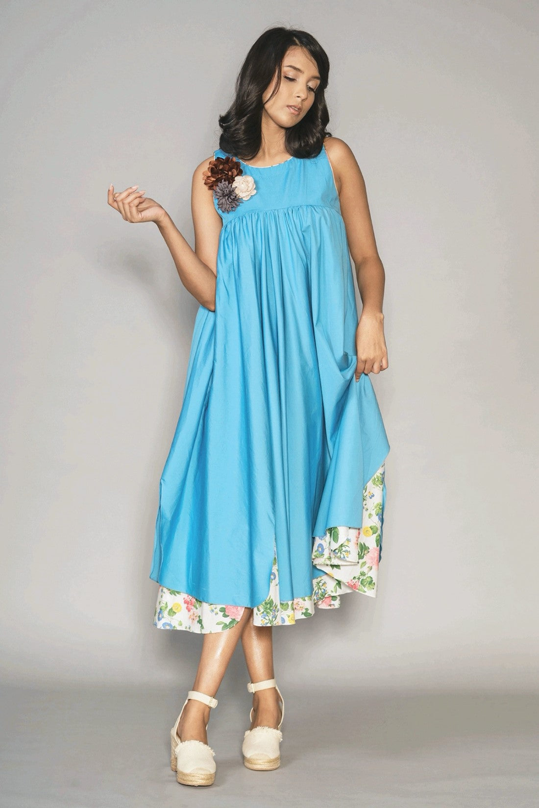 This multi-layered long maxi dress exudes timeless elegance with vintage scallop details at the bottom, adorned with floral brooches. Perfect for special occasions, it combines grace, charm, and a touch of glamour in one stunning ensemble.