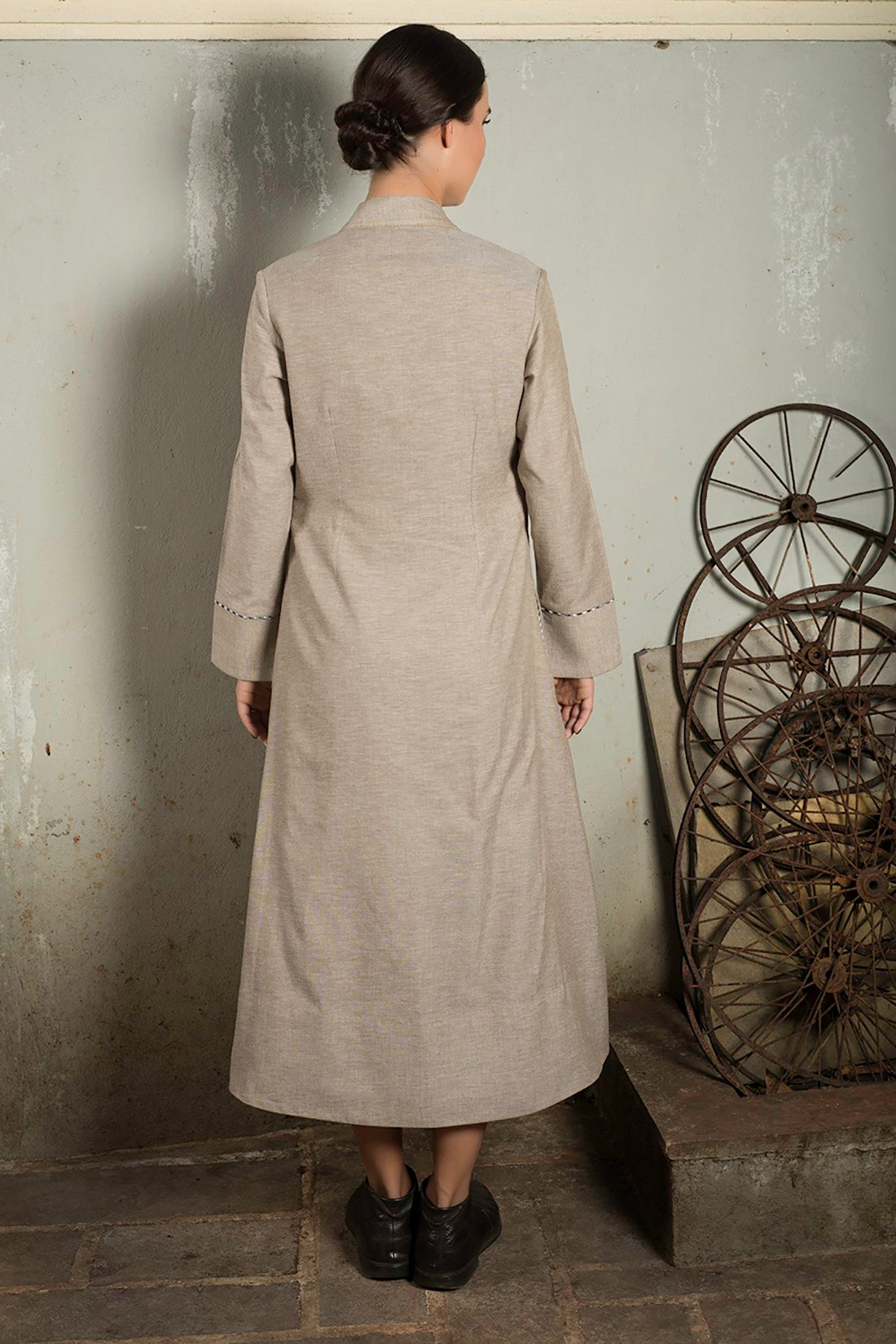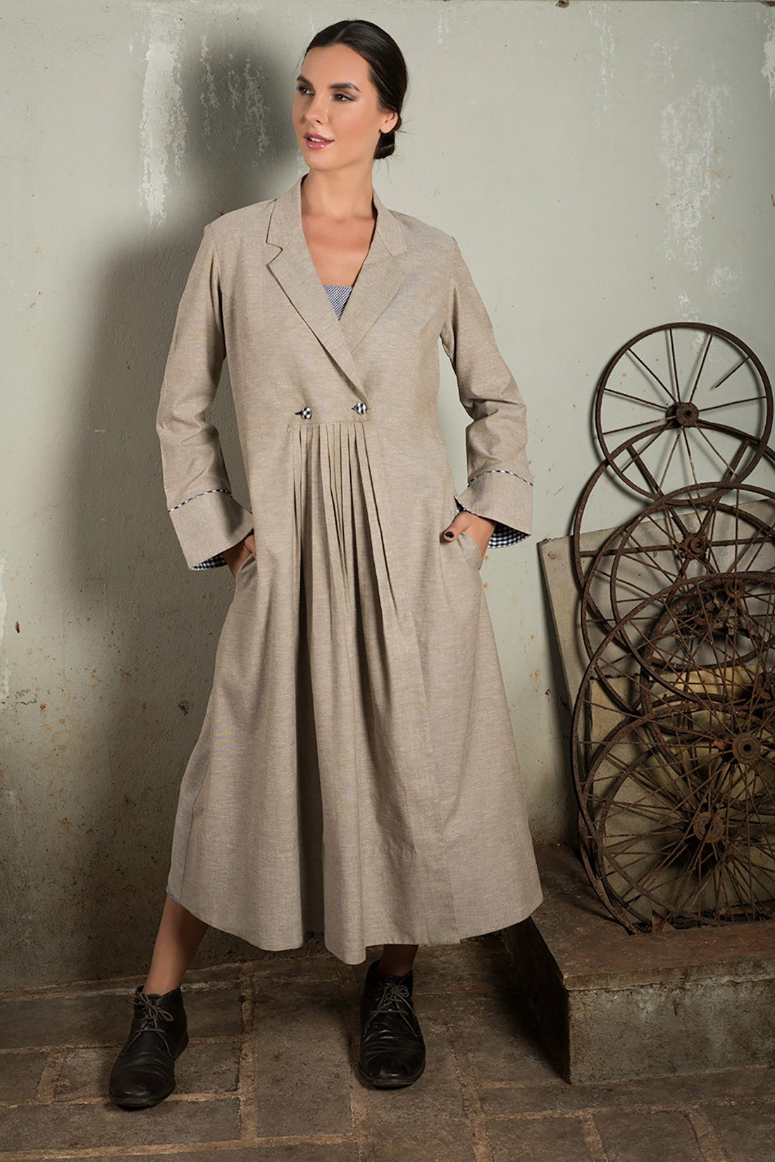 Long length single breasted jacket/ overcoat with two buttons and pleat details on the front