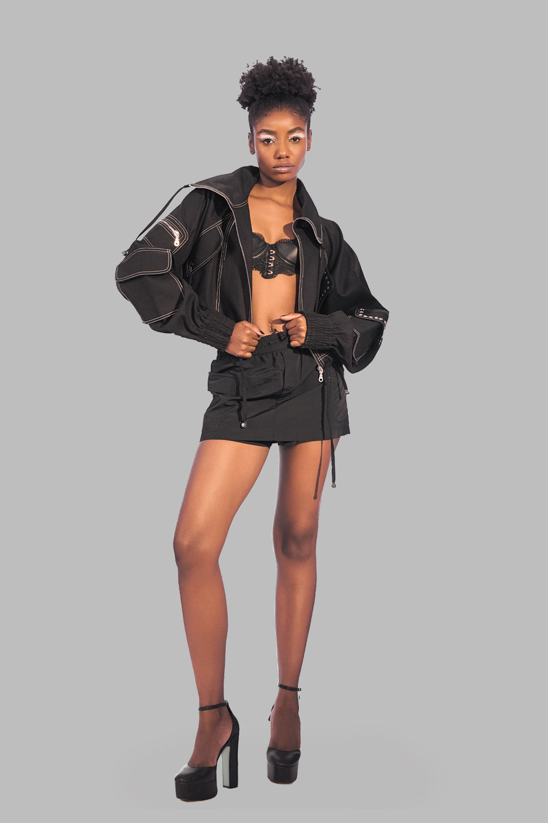 - The jacket is enhanced with zipper detailing and star shaped metallic studds