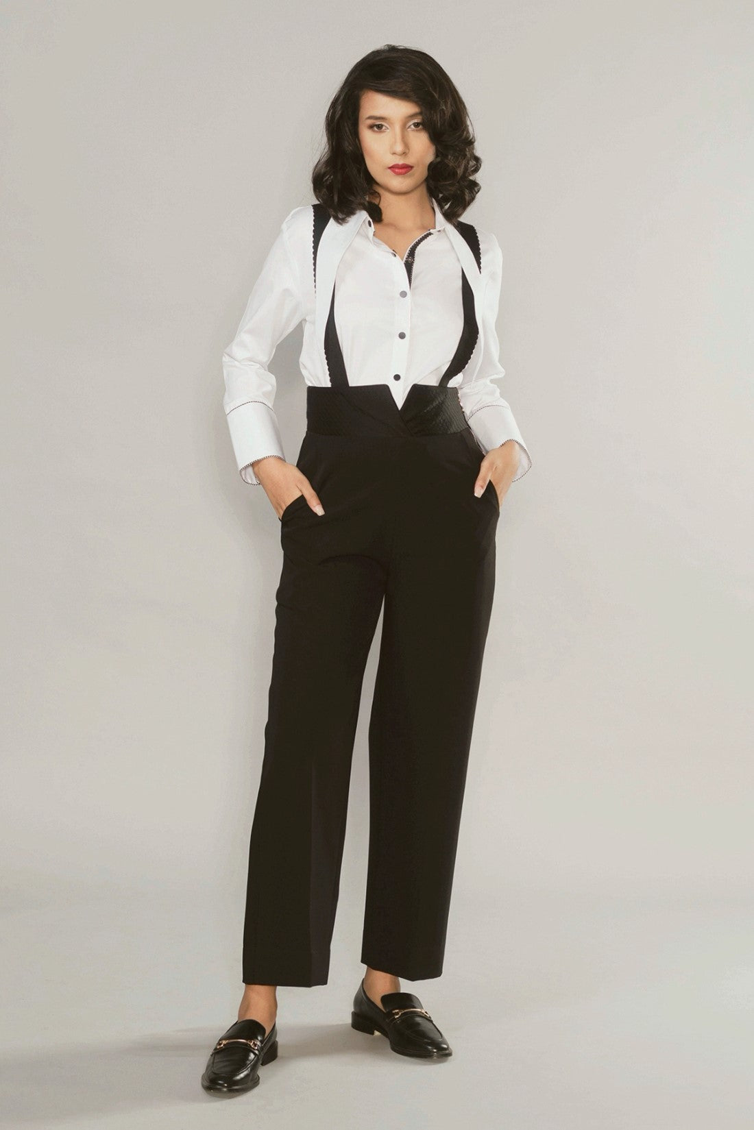 The captivating shirt features exaggerated collars that draw attention to the wearer's neckline. Delicate black lace decorates the seams, creating a charming contrast against the refined fabric. Snap buttons provide a seamless dressing experience. Combine it with our Eliot Suspender Pants for a captivating Victorian-inspired ensemble.