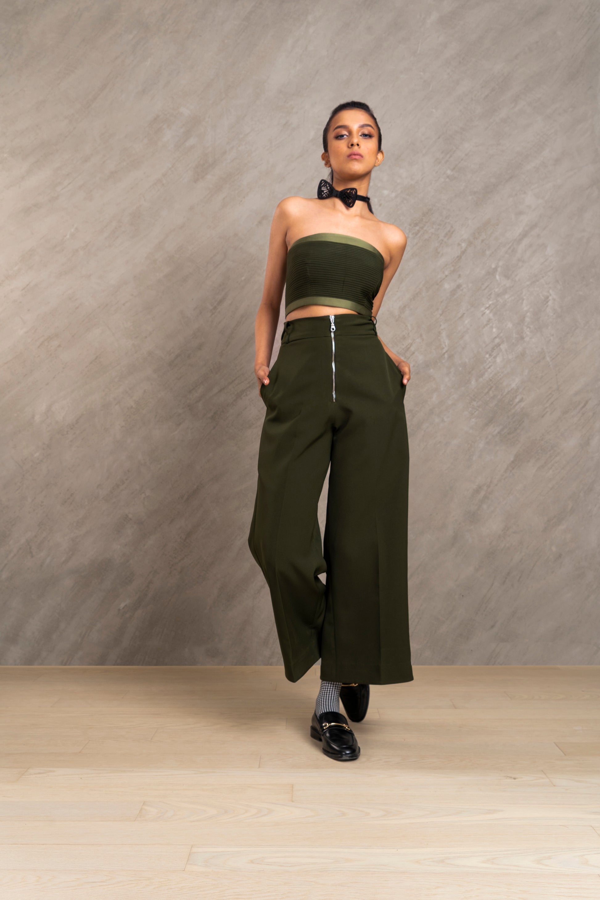 Game up your style quotient by pairing the pants with RUTH blazer jacket and BADER bustier top JR shirt