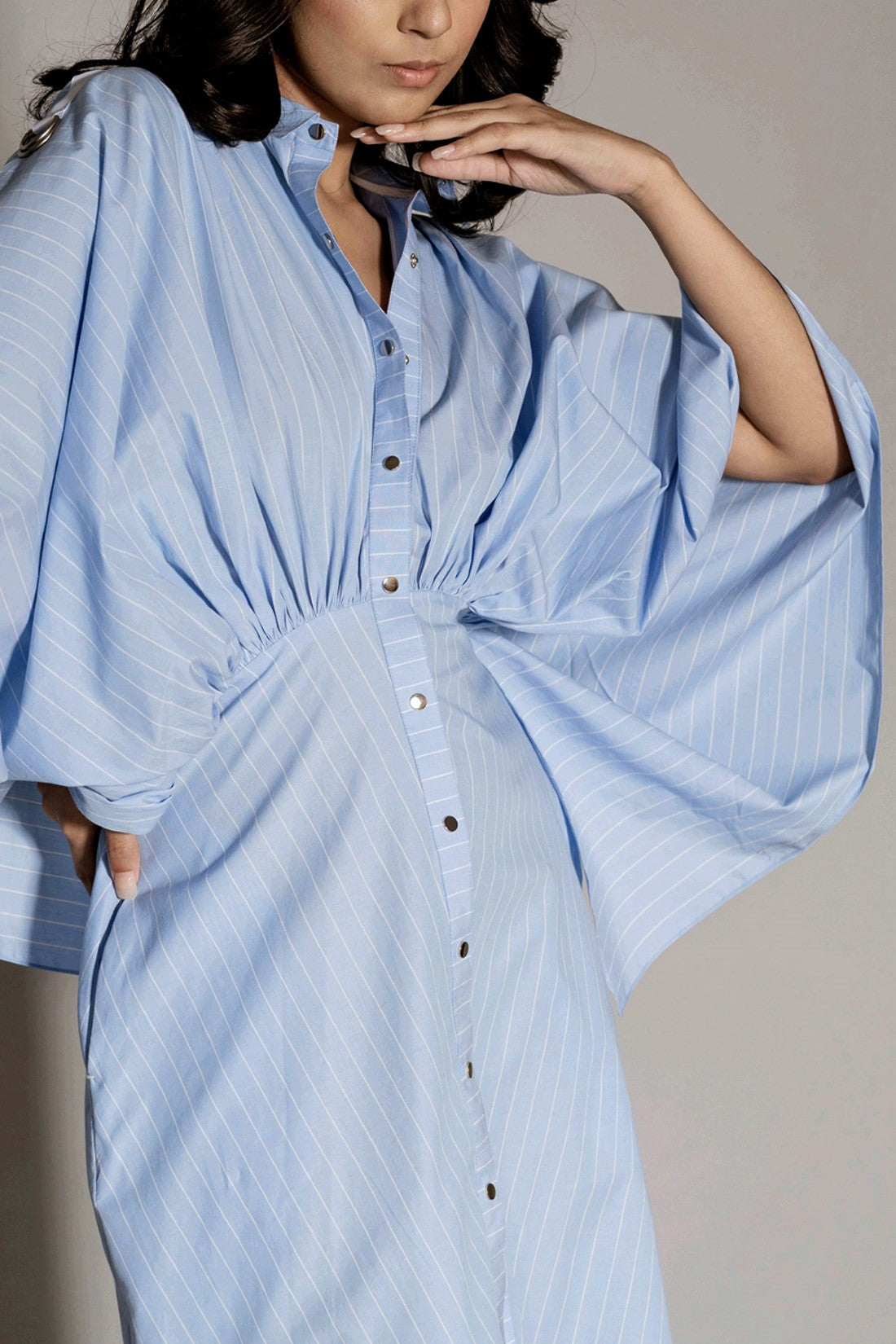 This comfortable and stylish kaftan drapes beautifully and creates a relaxed silhouette. The U-shaped ruche detail adds a touch of visual interest, while the batwing sleeves provide an airy and breezy feel. Perfect for a dreamy and effortless look, this kaftan is a must-have for any occasion.