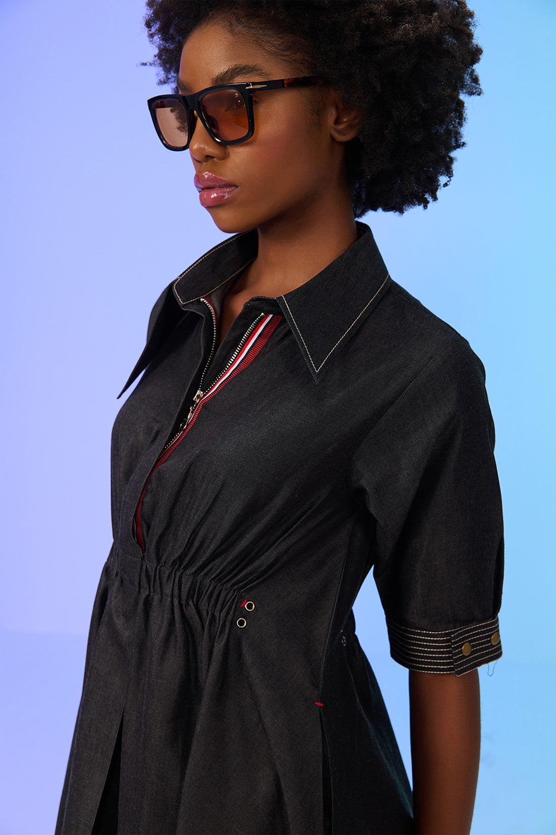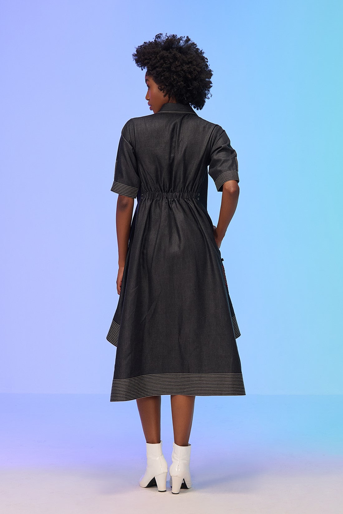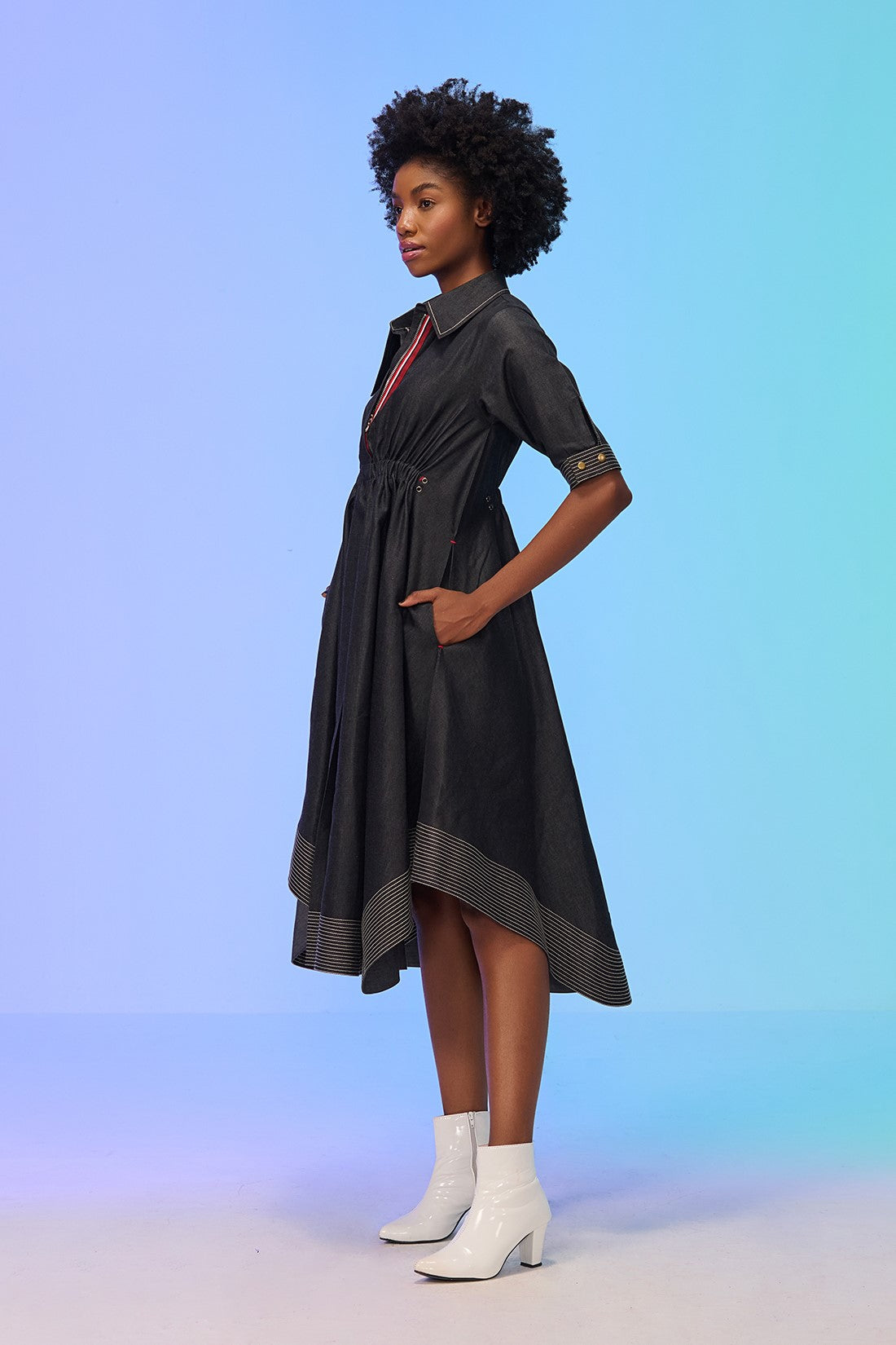 - Contrasting Stich-line detailing on the cuff and hem of the dress