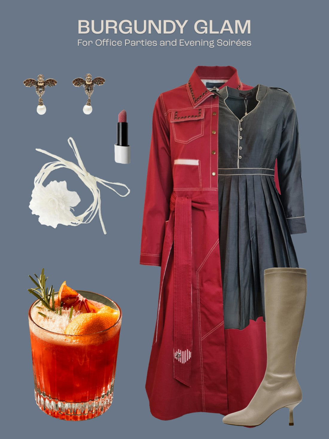 Burgundy Demure: For Office Parties and Evening Soirées - The rich burgundy shade adds sophistication to your evening ensemble, while the contemporary details ensure you stand out for all the right reasons.