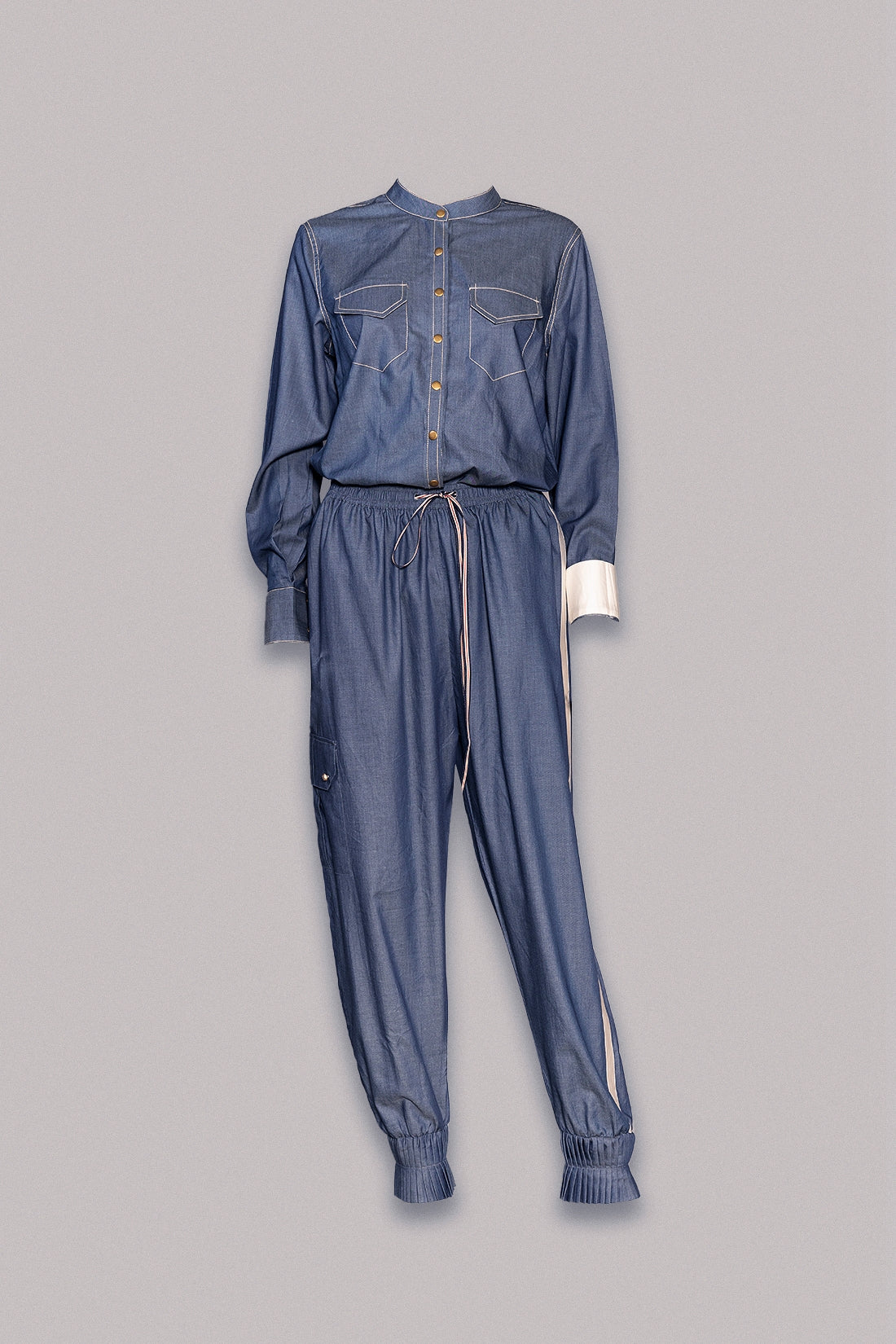Our chambray Co-ord set includes a lightweight, comfortable shirt paired with matching joggers. Designed for effortless style and everyday comfort.