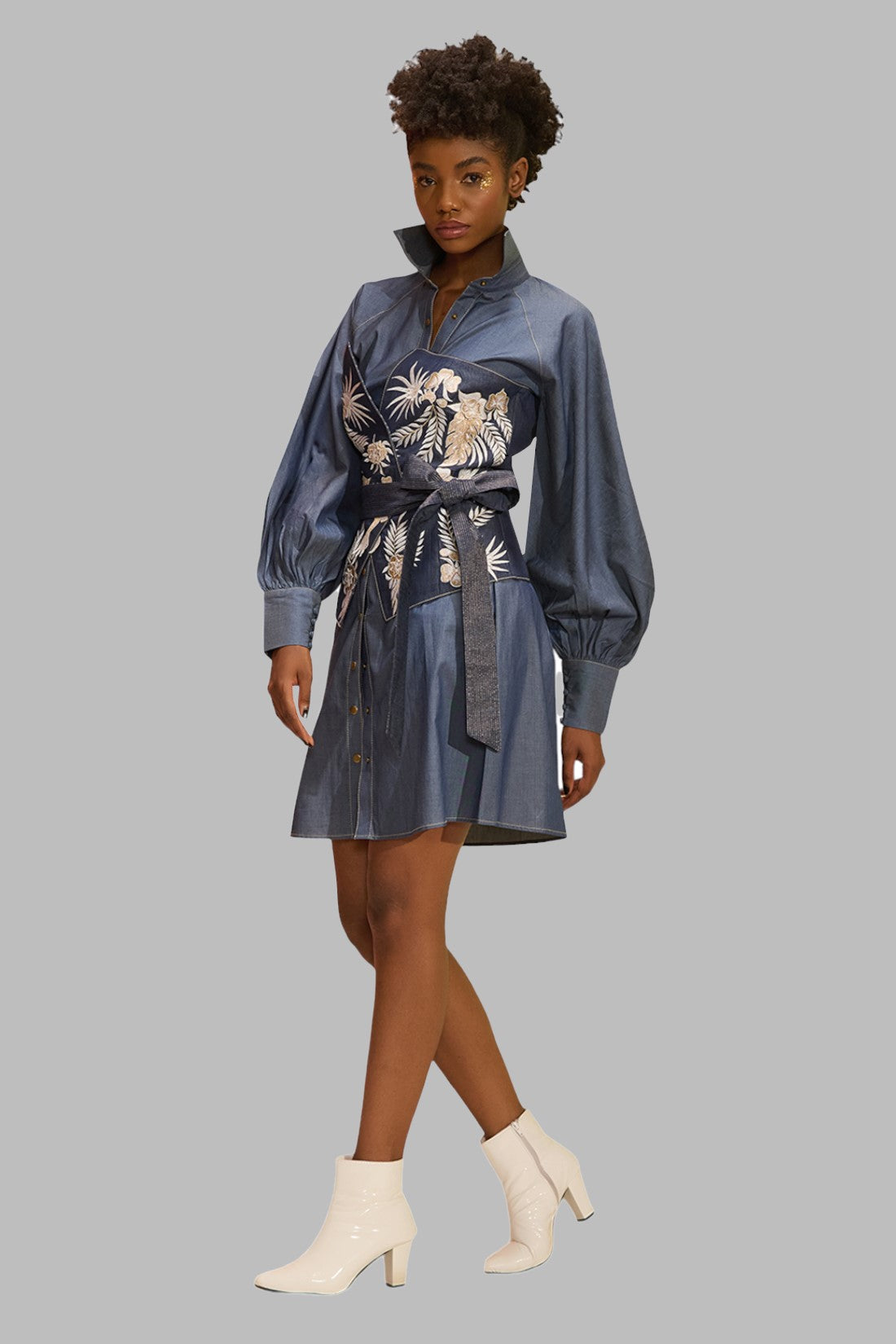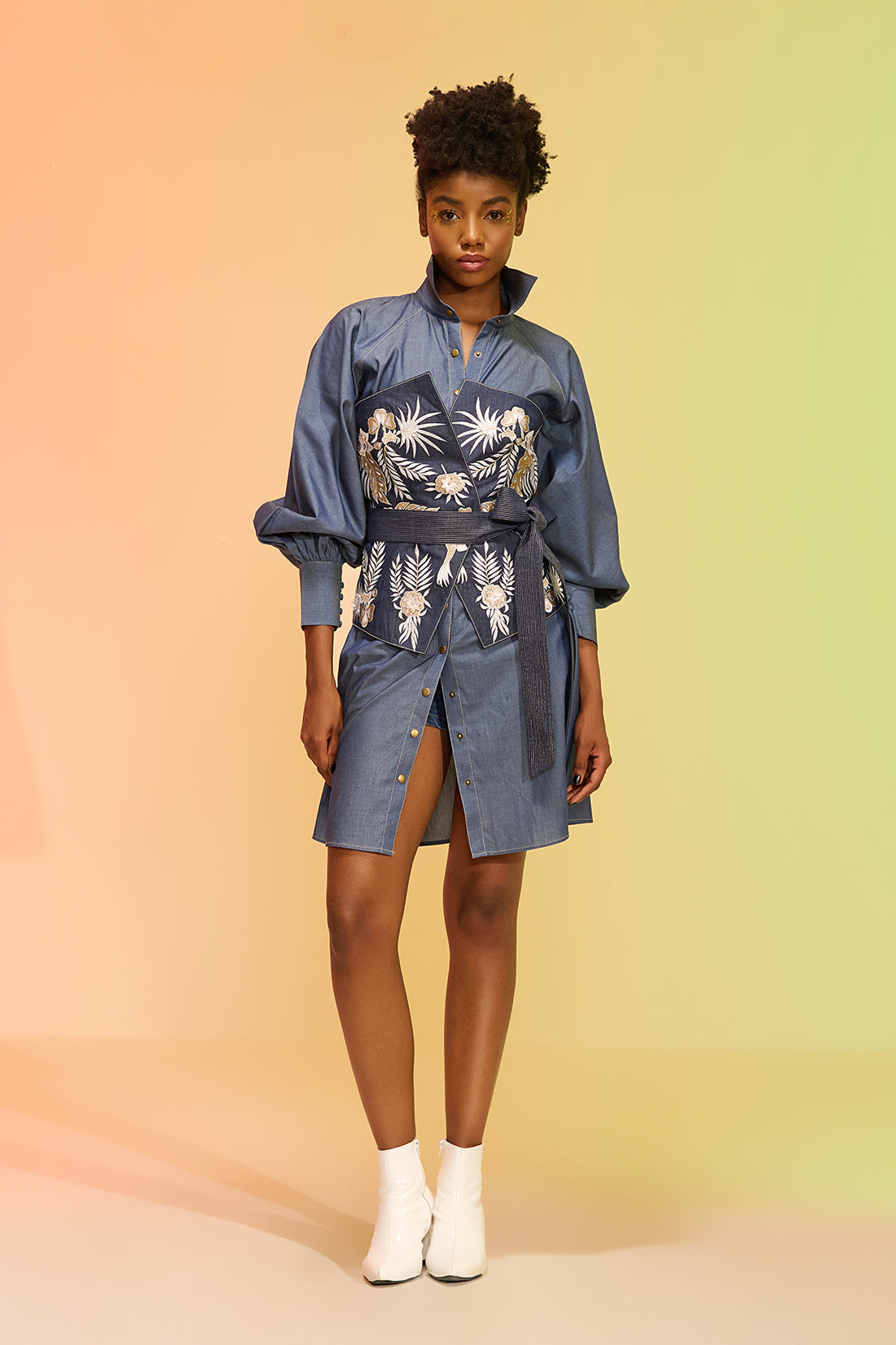 A chic corset with boho-inspired extensive embroidery on the front bodice. The corset can be teamed with a shirt, dress or on its own to suit the mood and time of the day. Elevate your look with the waist belt tied into a pretty bow.