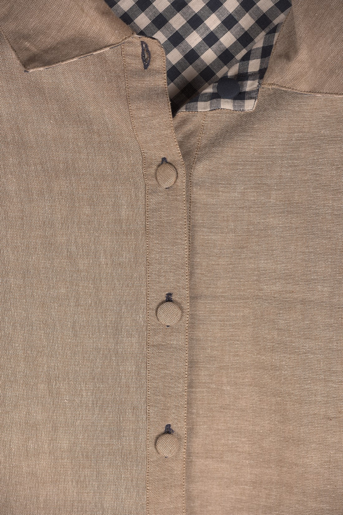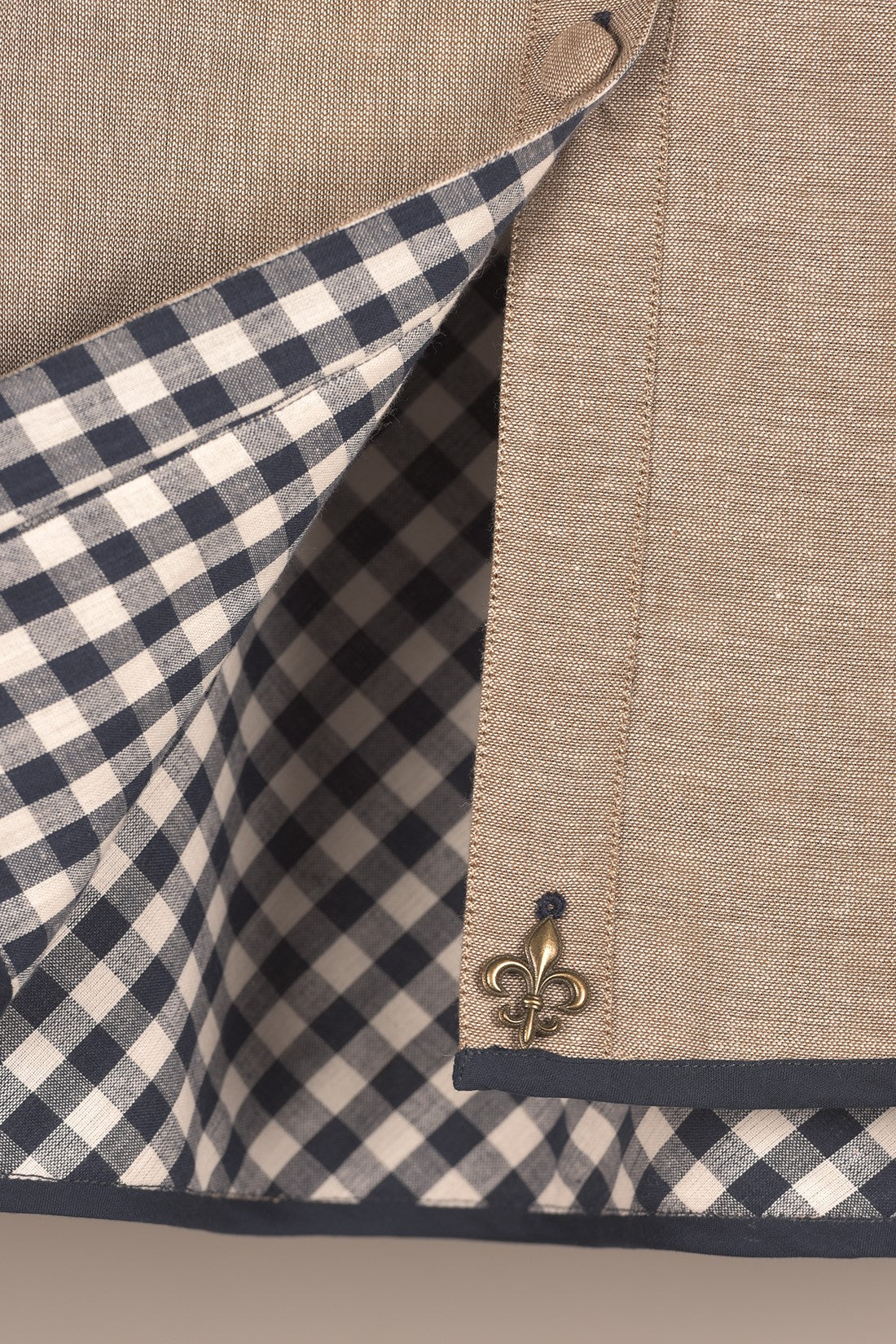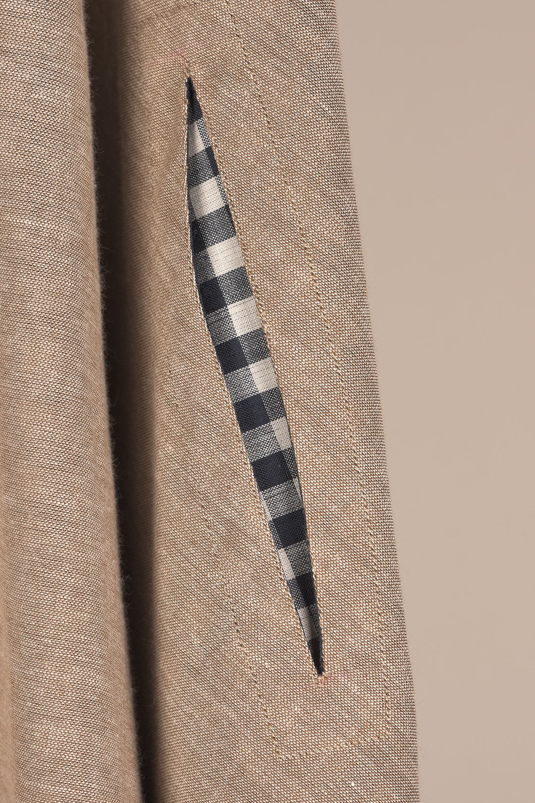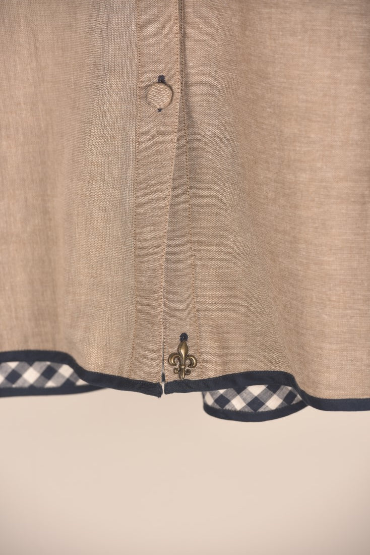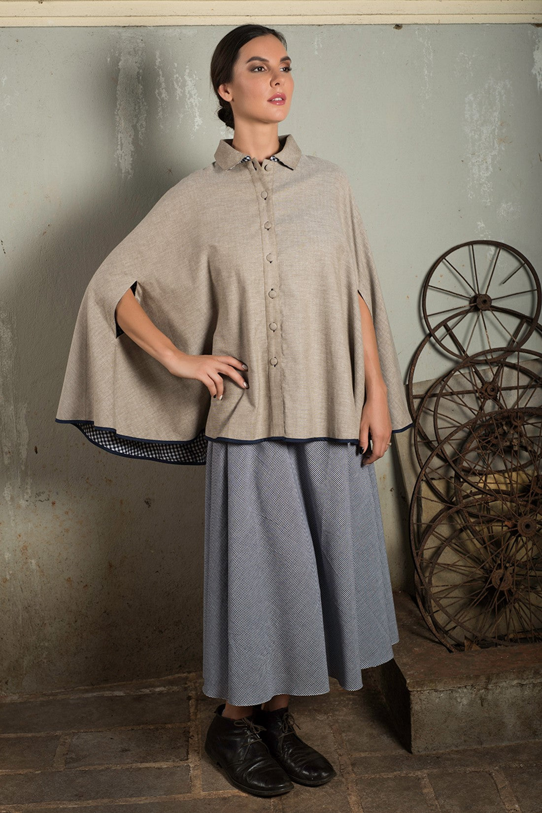 Reversible cape between a single colour and checks facing fabric with charm detail and pockets
