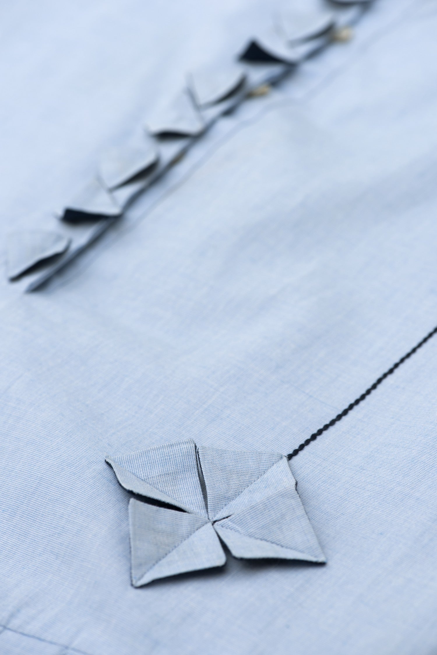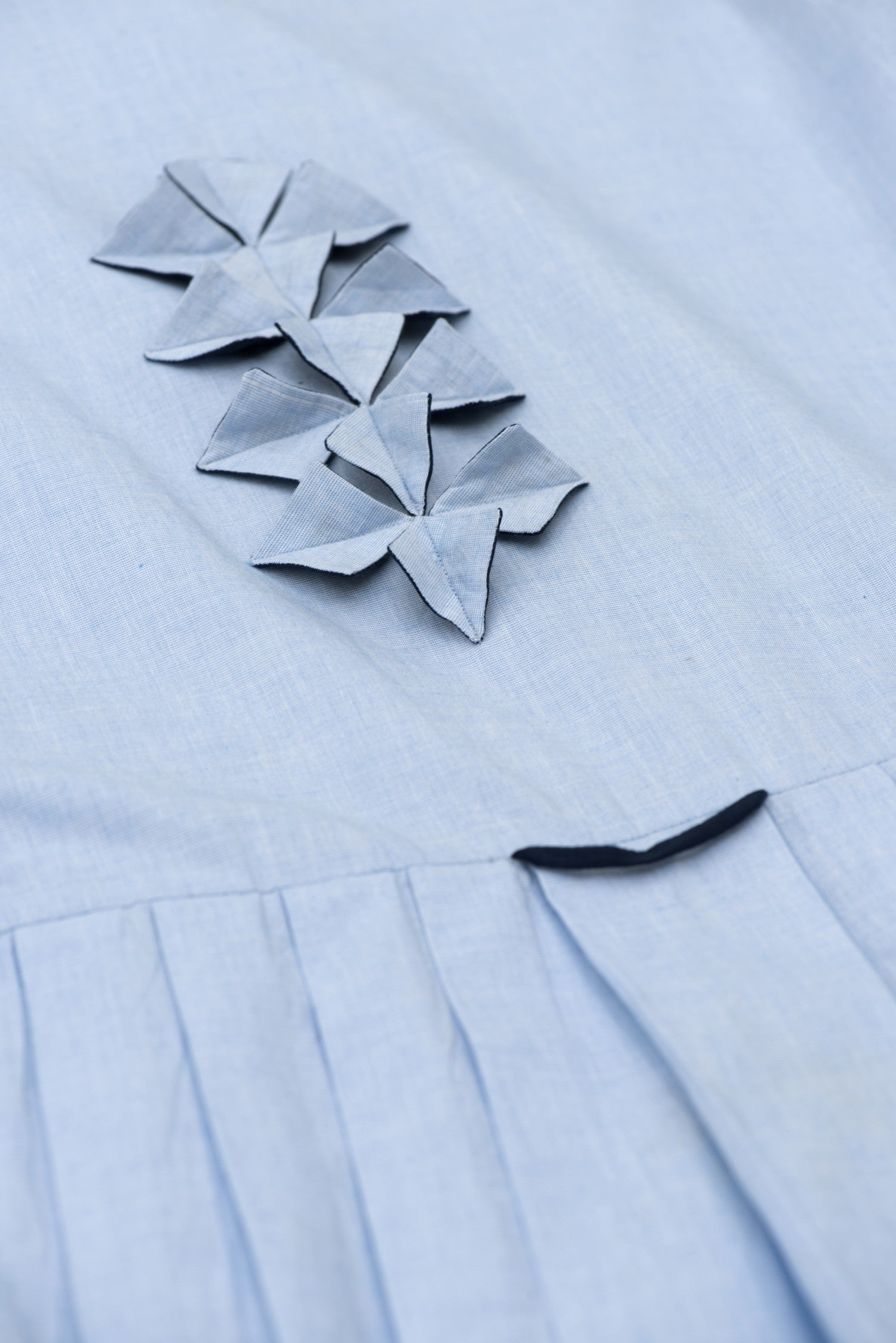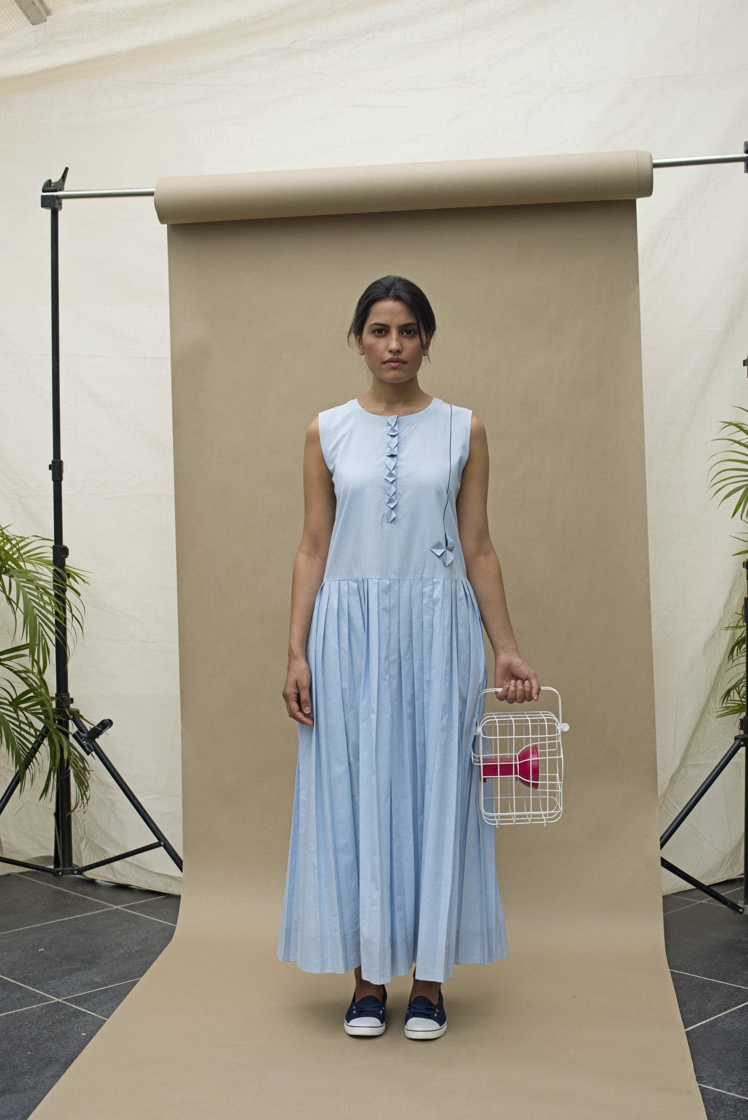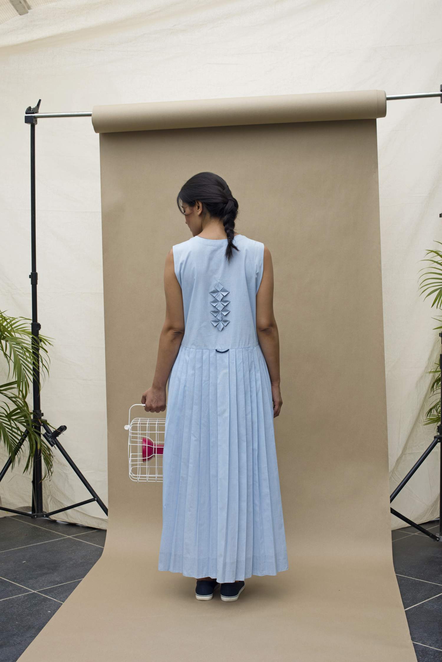 Long dress sleeveless with pleat details and handstitched origami details at the back