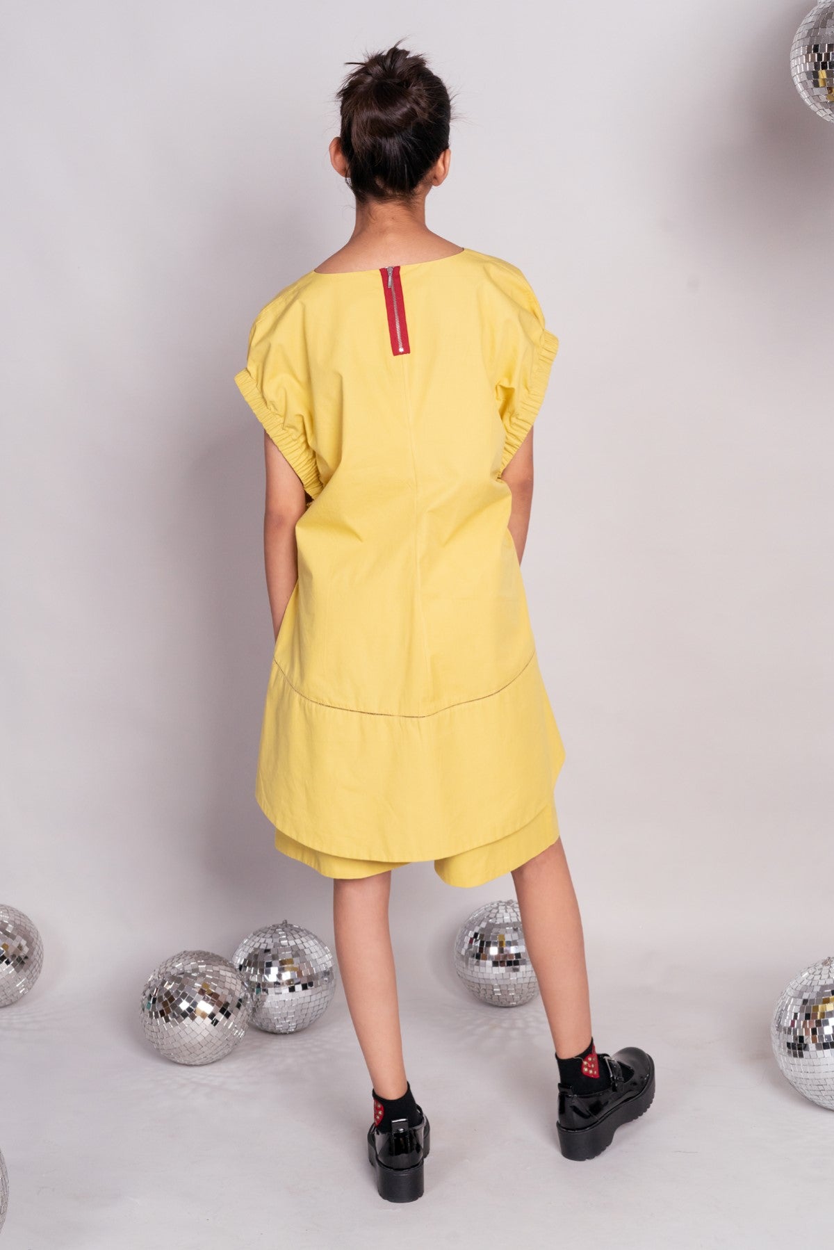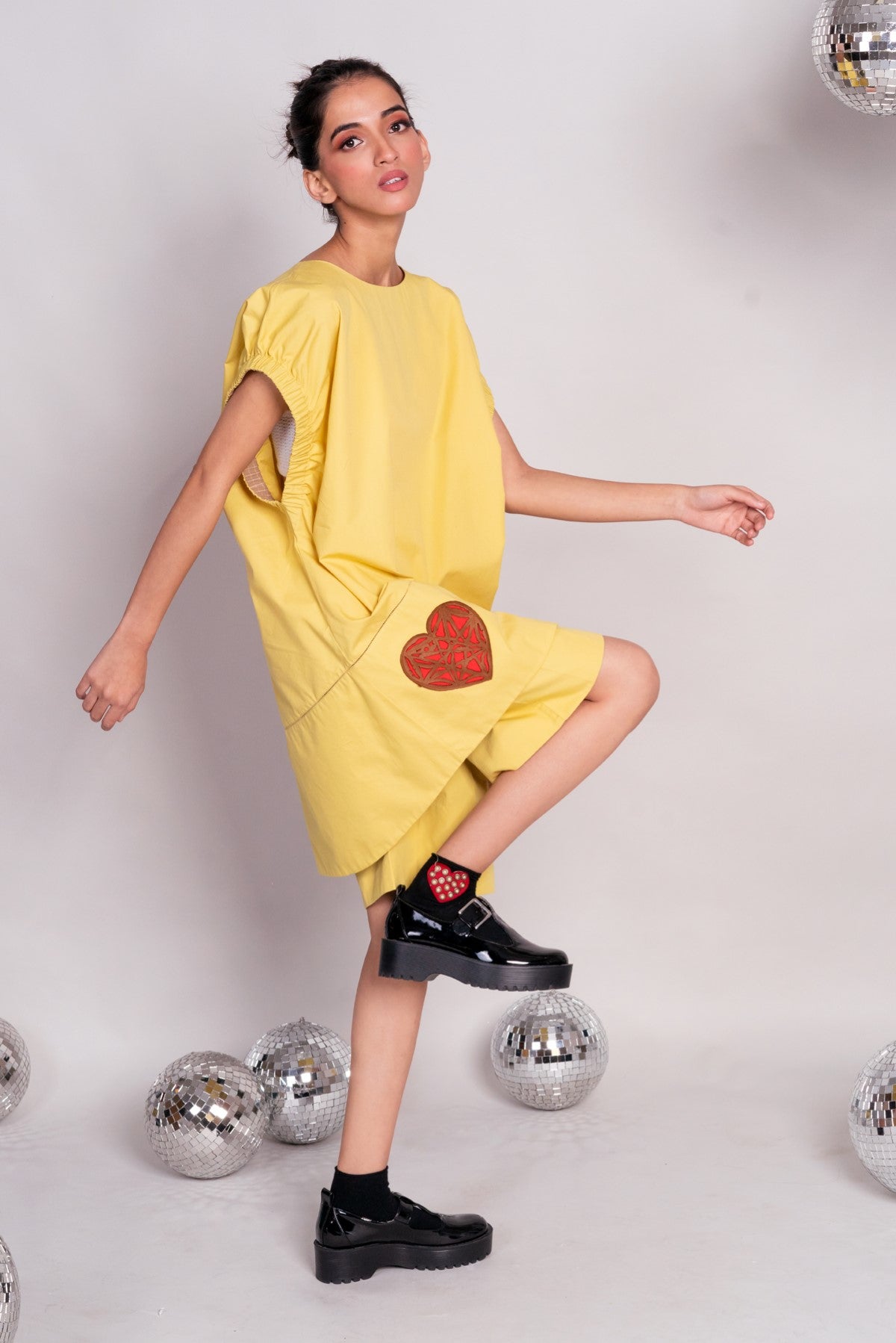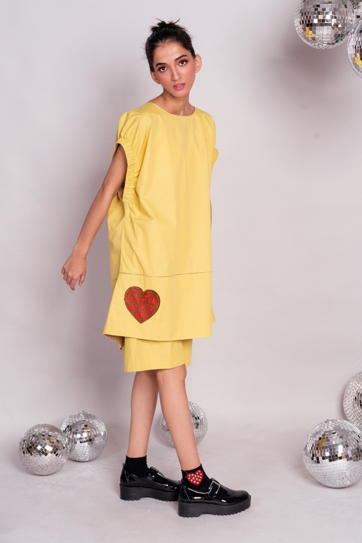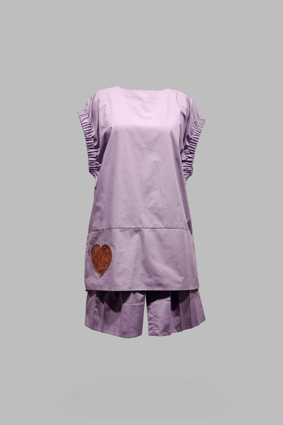 • Relaxed fit top with elastic ruched sleeves and matching short