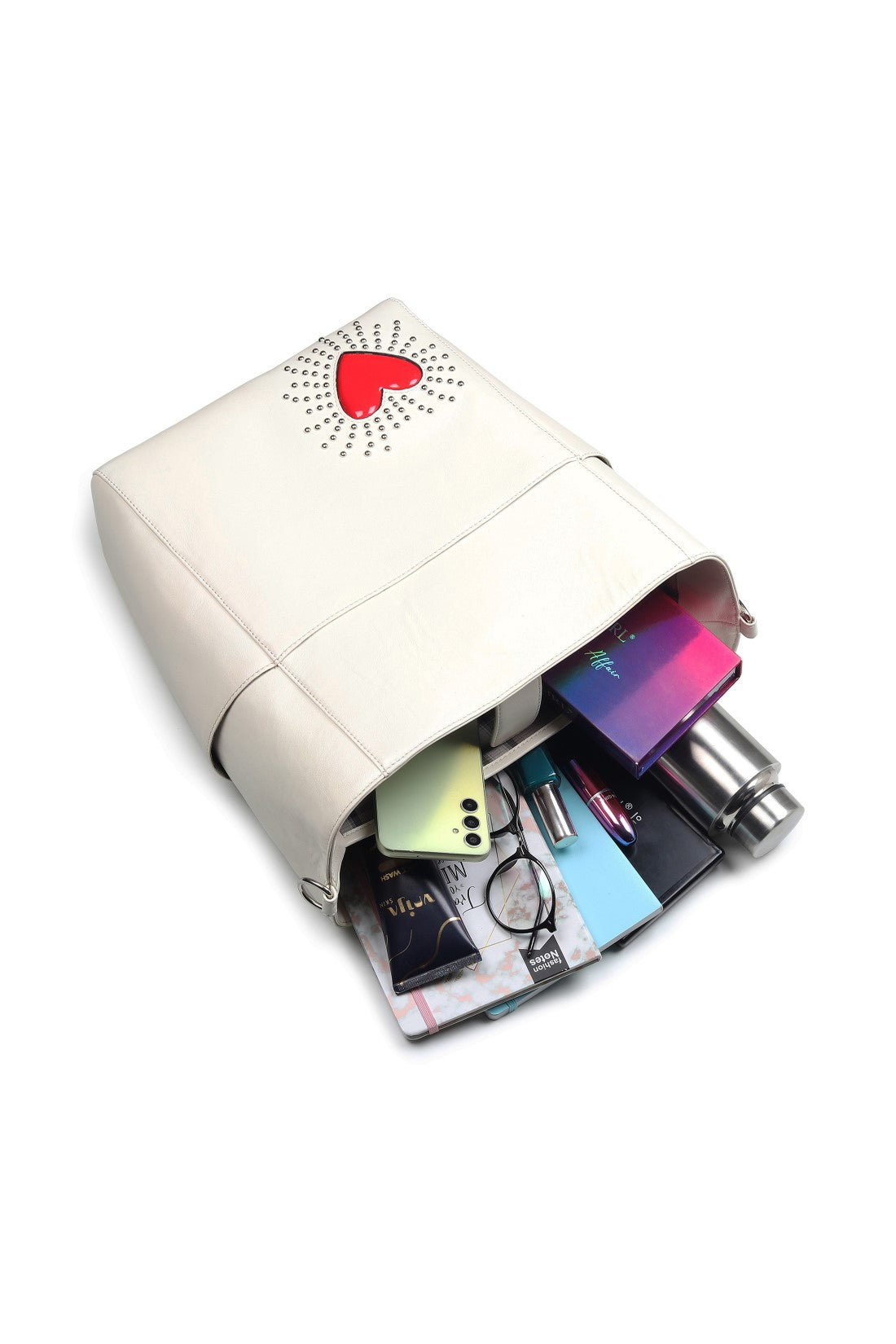 A structured shoulder bag with a clean, modern silhouette, designed for effortless everyday use. Featuring a subtle heart-detail accent, a detachable adjustable strap, and a spacious interior for daily essentials, this versatile style is easy to carry and works seamlessly with relaxed, casual looks.