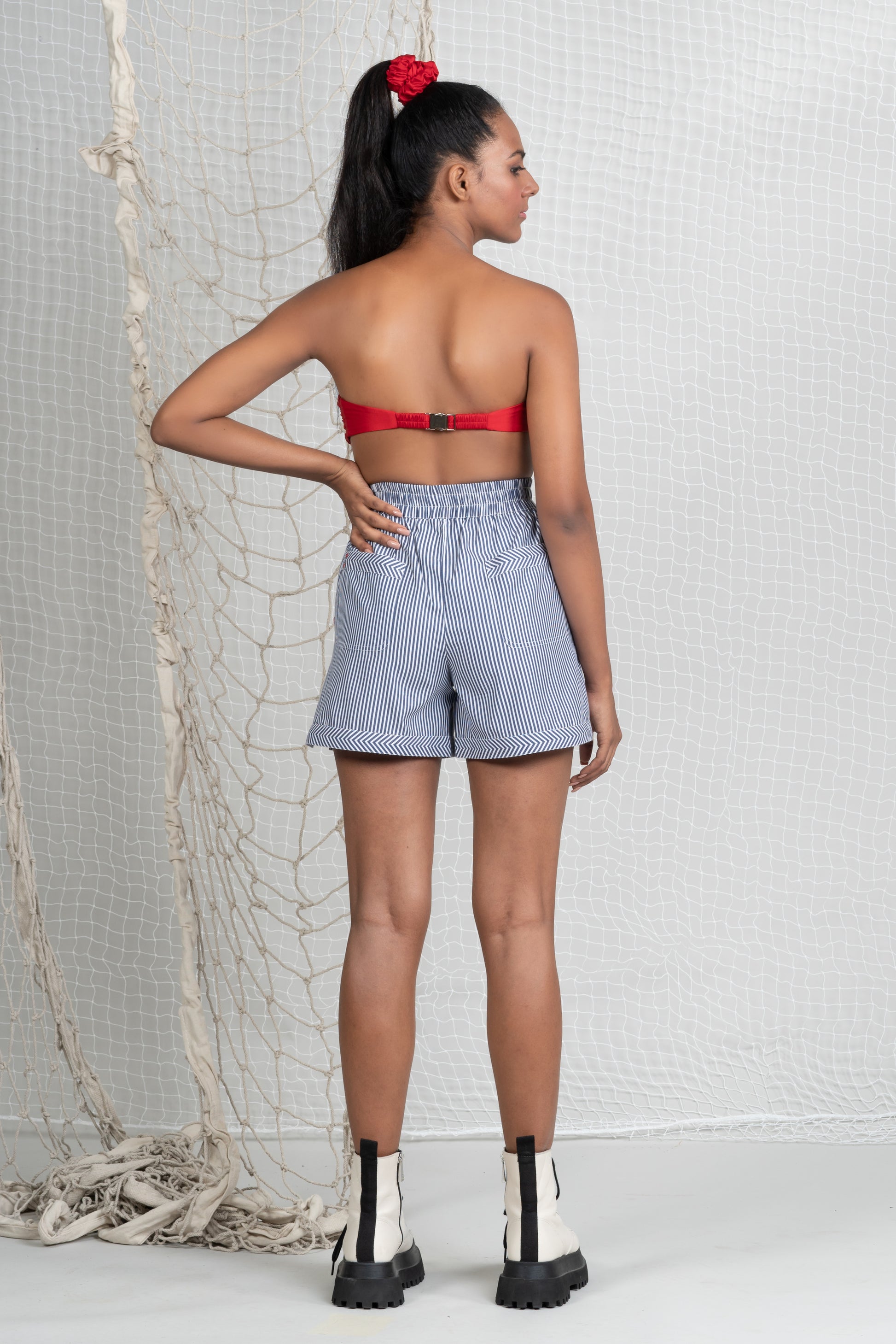 Gathered bustier top in Milano Silk with elasticated back and buckle closure to provide a smooth and comfortable fit.