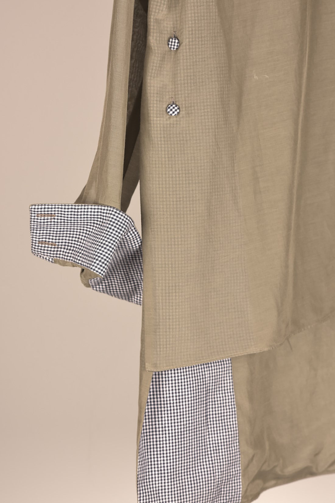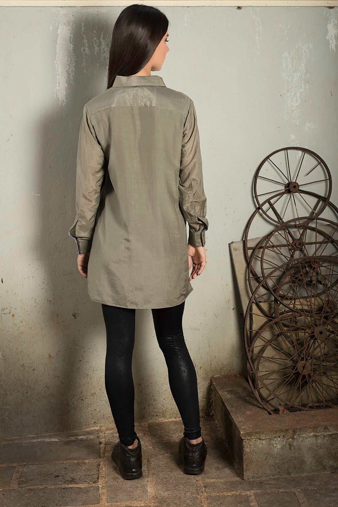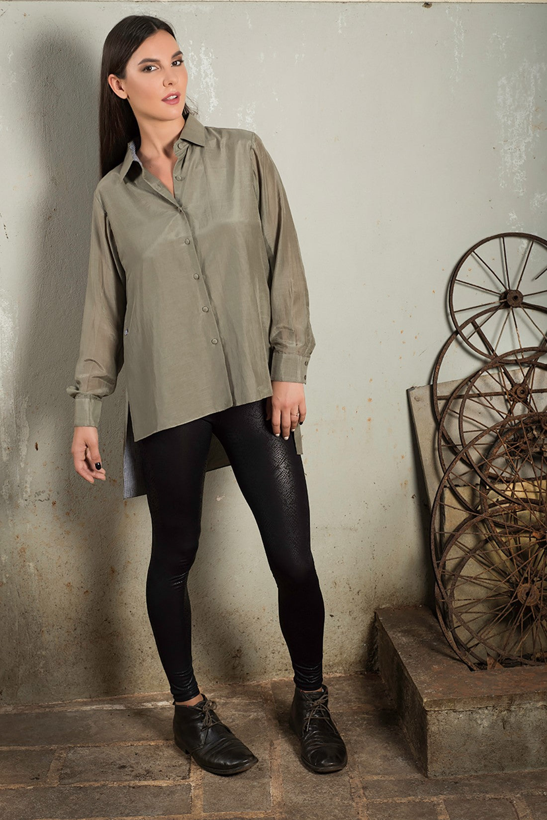 Long sleeves shirt with full front buttons and overlap detail on the side