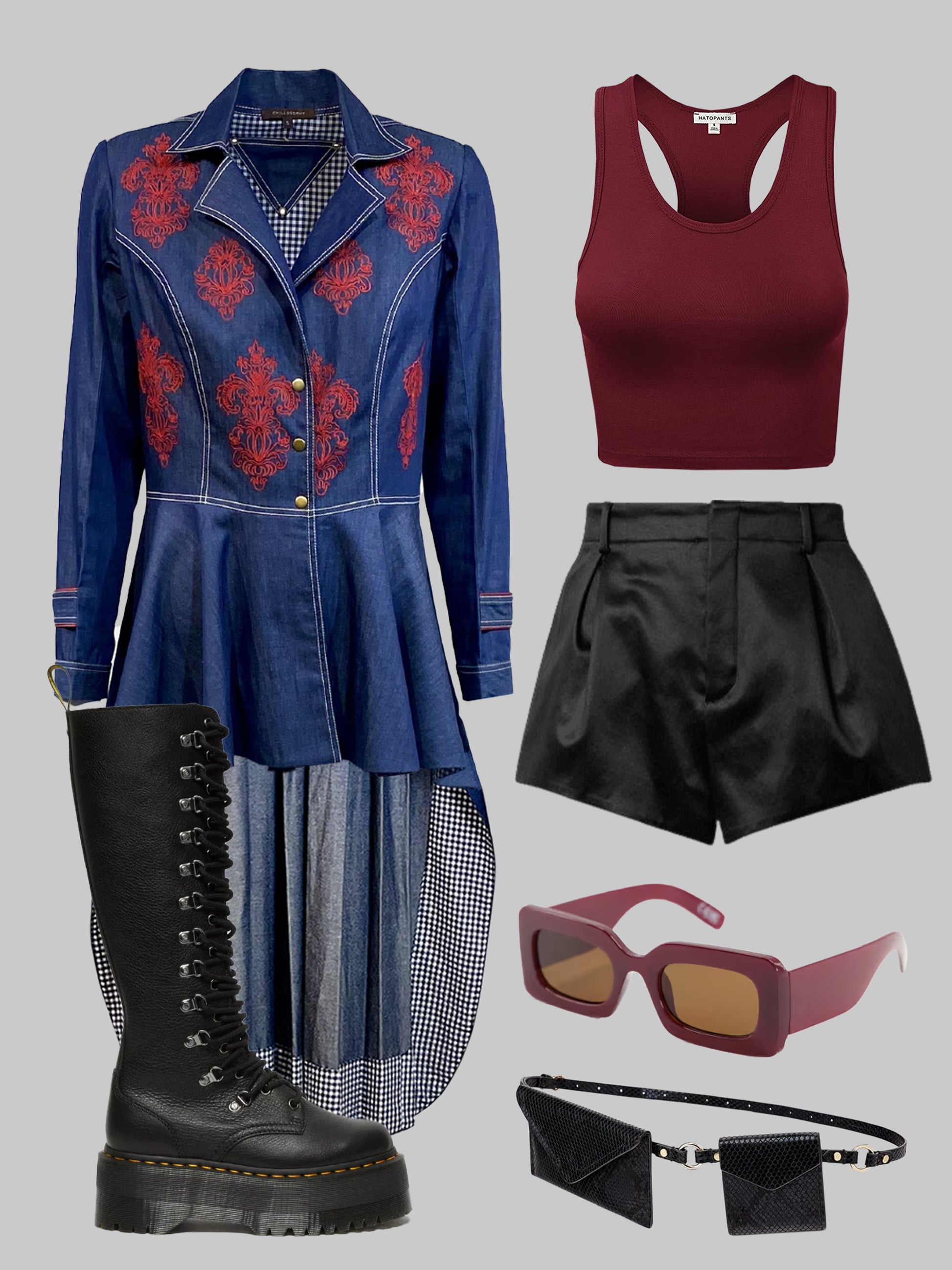 - Unique mix of eyelets and rivets embellish the garment