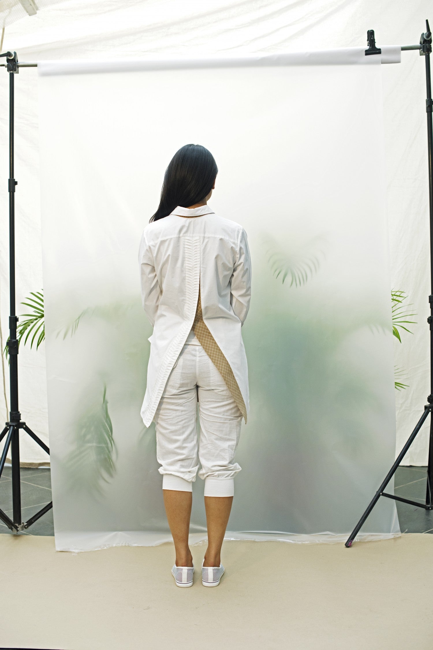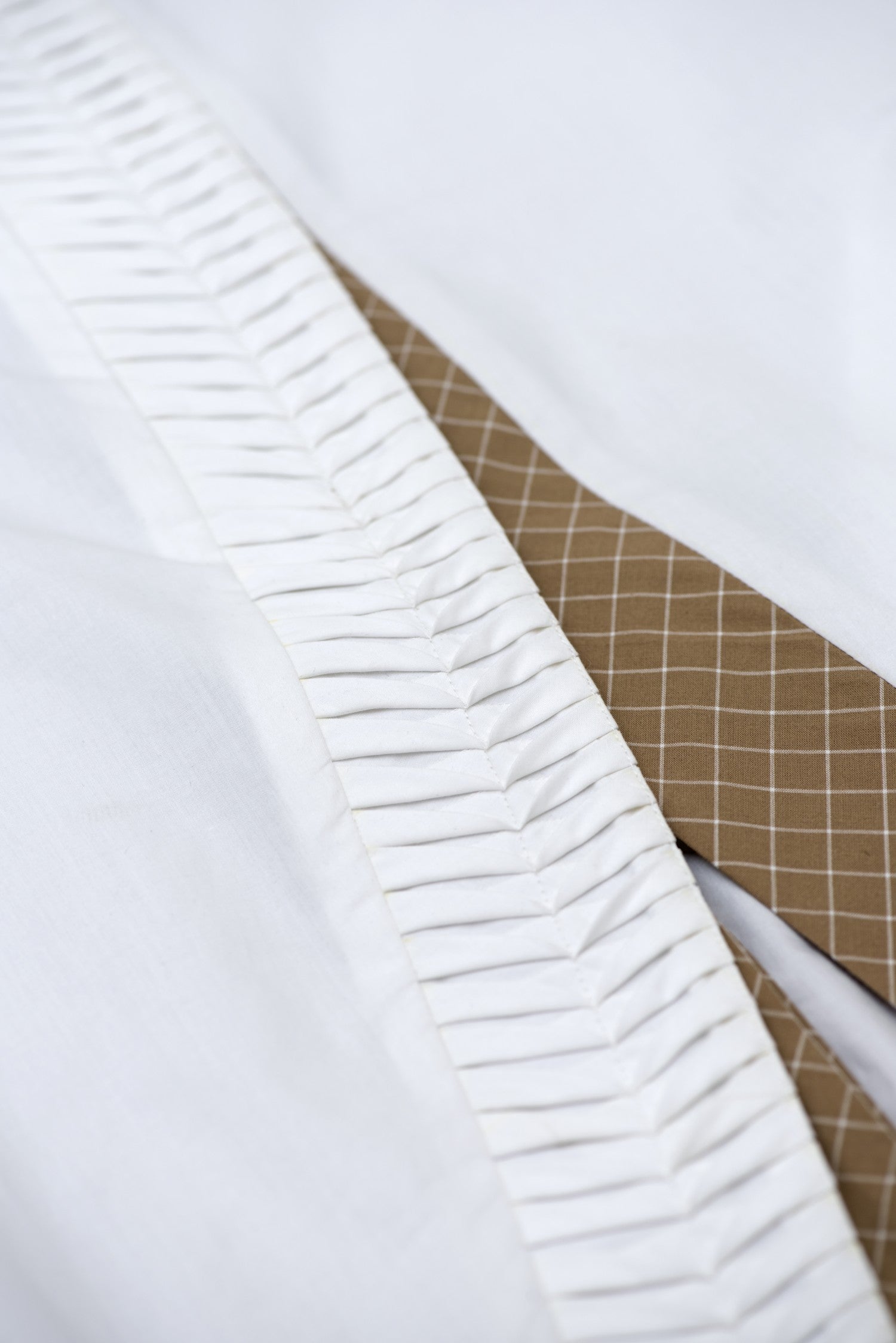 Long front buttoned shirt with check facing details and has pleats details on the back