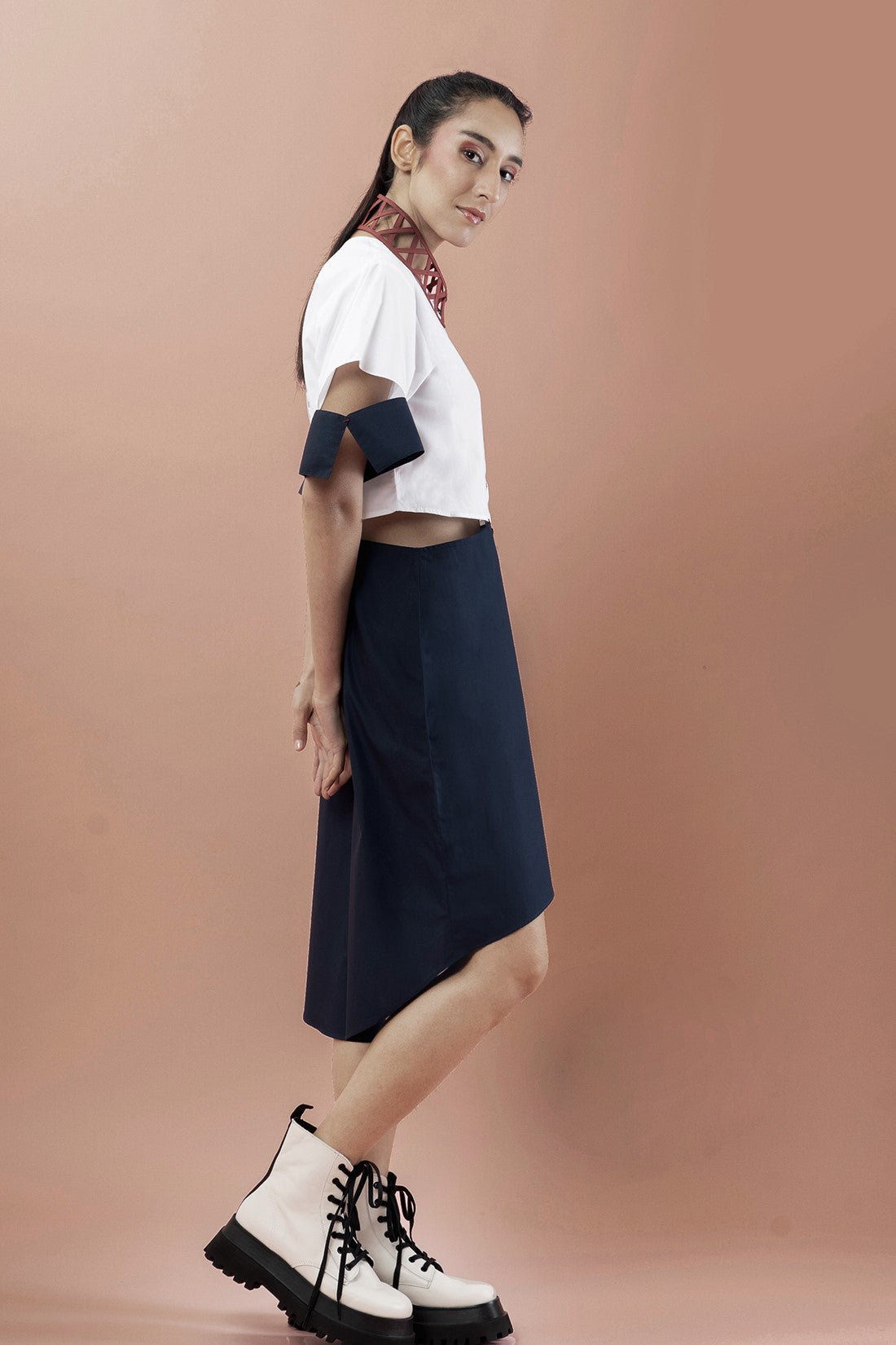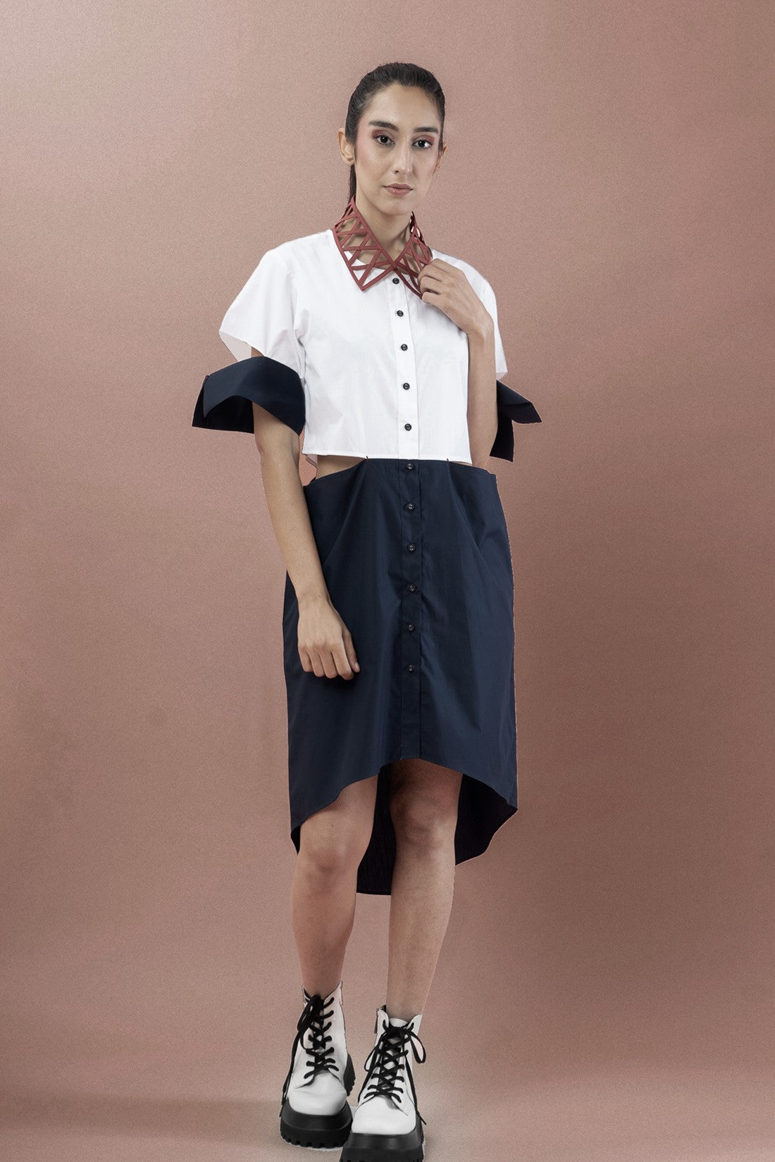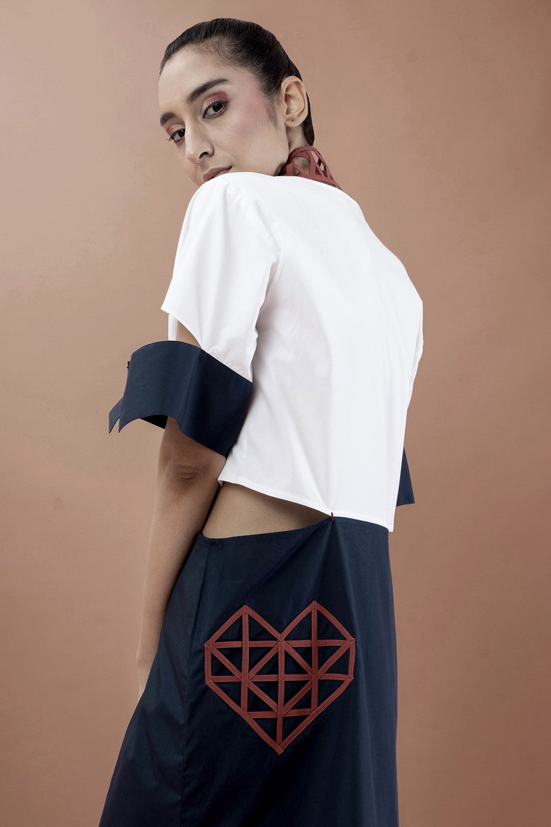 A mid-length tunic with contrast tones, Janus plays with duality and edge. Its cut-out details express the Spaced Out idea of reinvention.