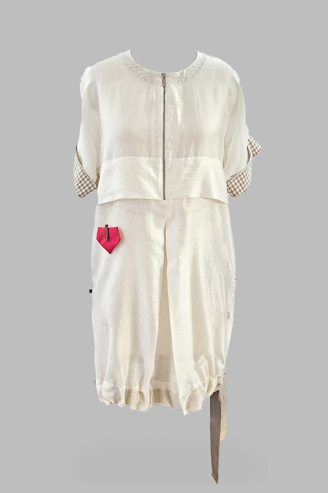 - Relaxed fit dress with short sleeves in contrast fabric border