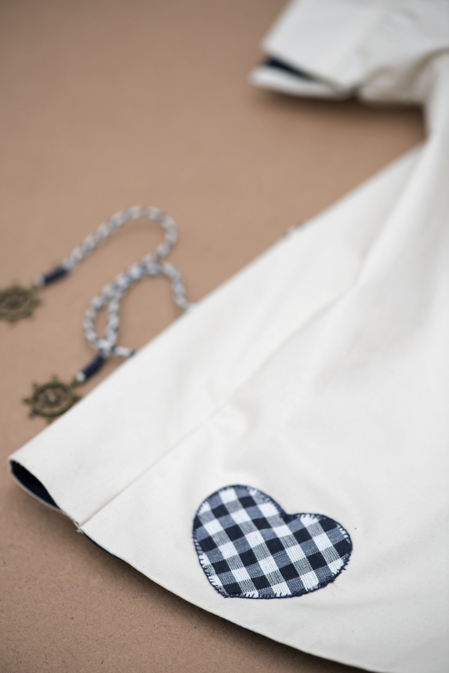 Cropped jacket with short puffed sleeves and front cord tie ended with charm details which comes with checks dress