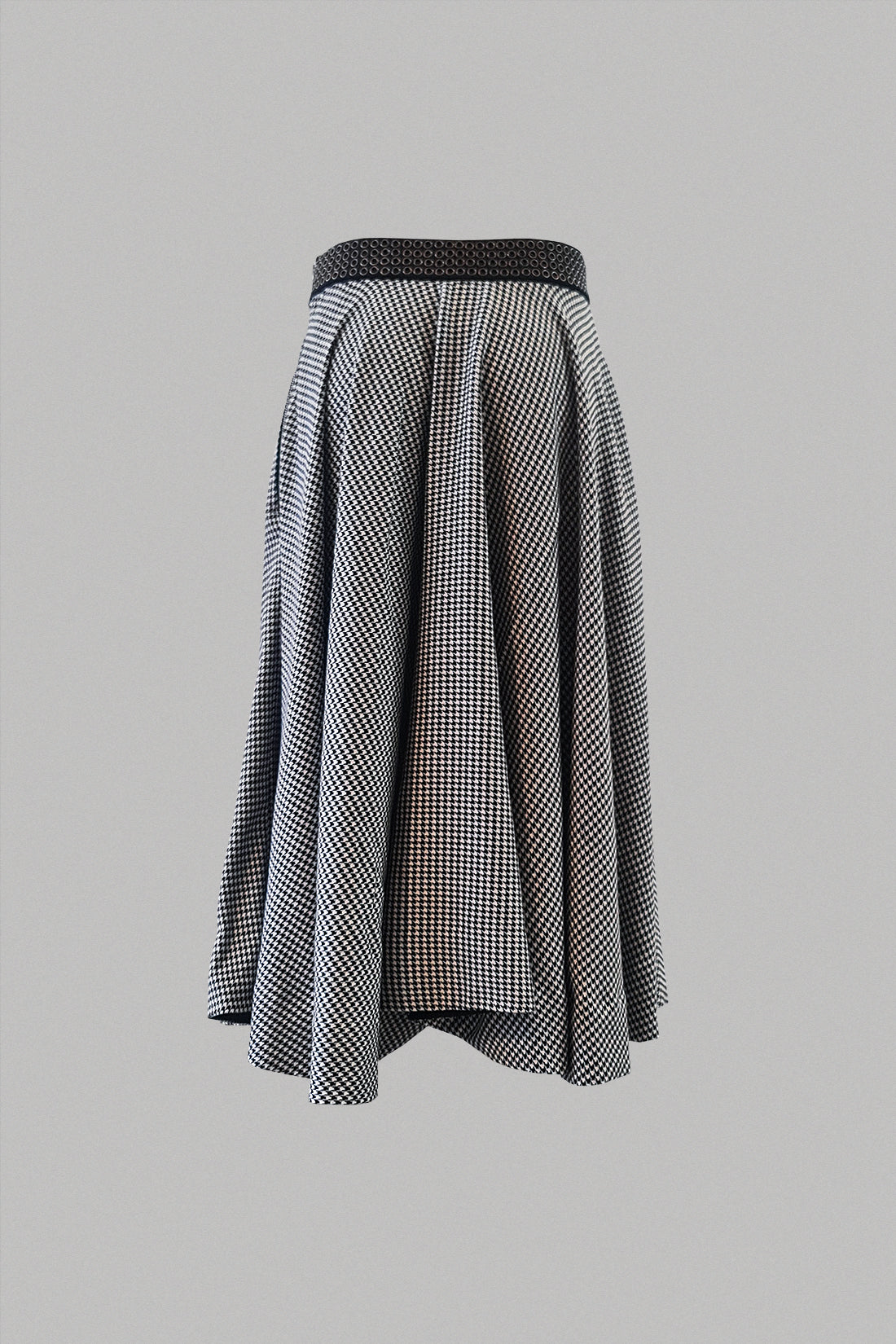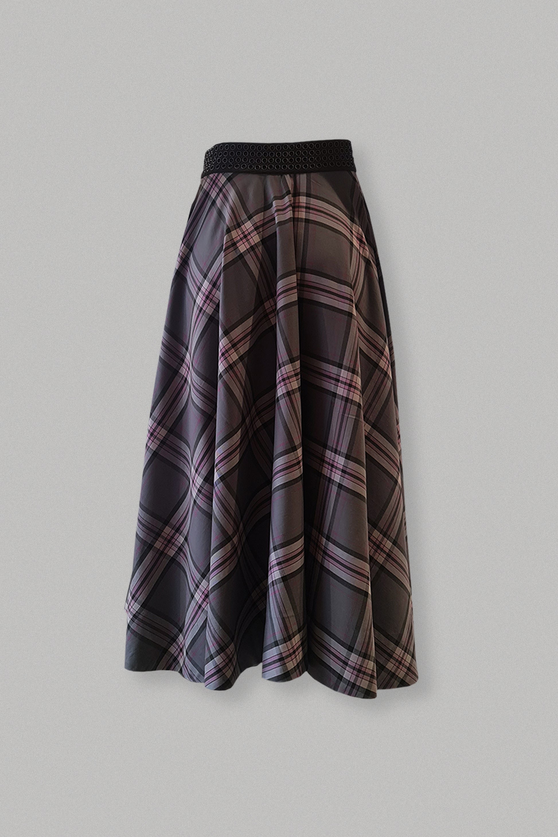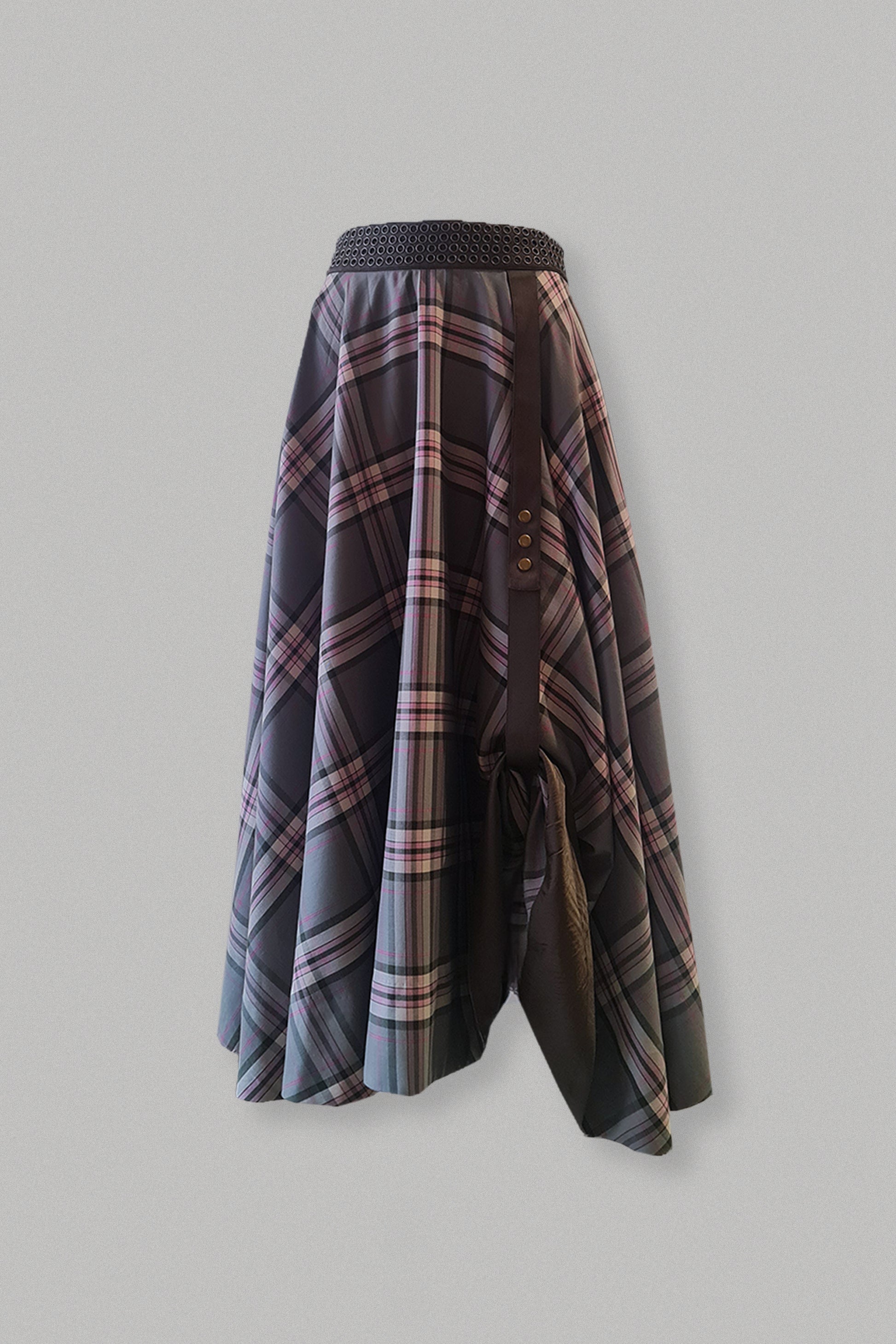Let your hair down and twirl around in this maxi circular skirt. The skirt features riveted waist belt and a side strap to adjust the length on one side.