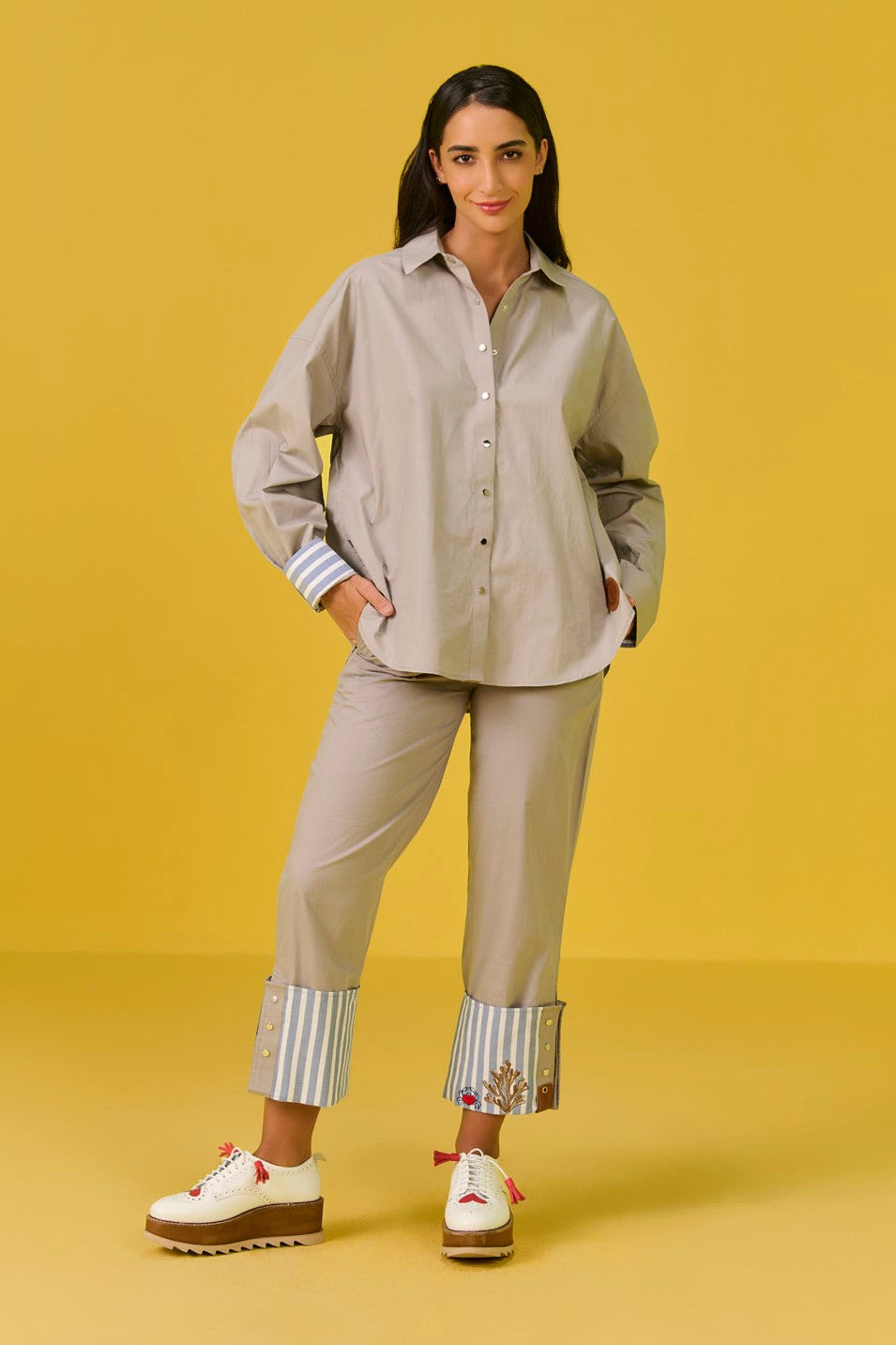Experience effortless style and comfort with these straight fit trousers. The standout feature is the stylish rolled up hem, accentuated by a slit and button details. The quirky theme embroidery on the hem cuff adds a touch of casual sophistication. Co-ordinate the look with our matching Kip shirt for a smart casual look.