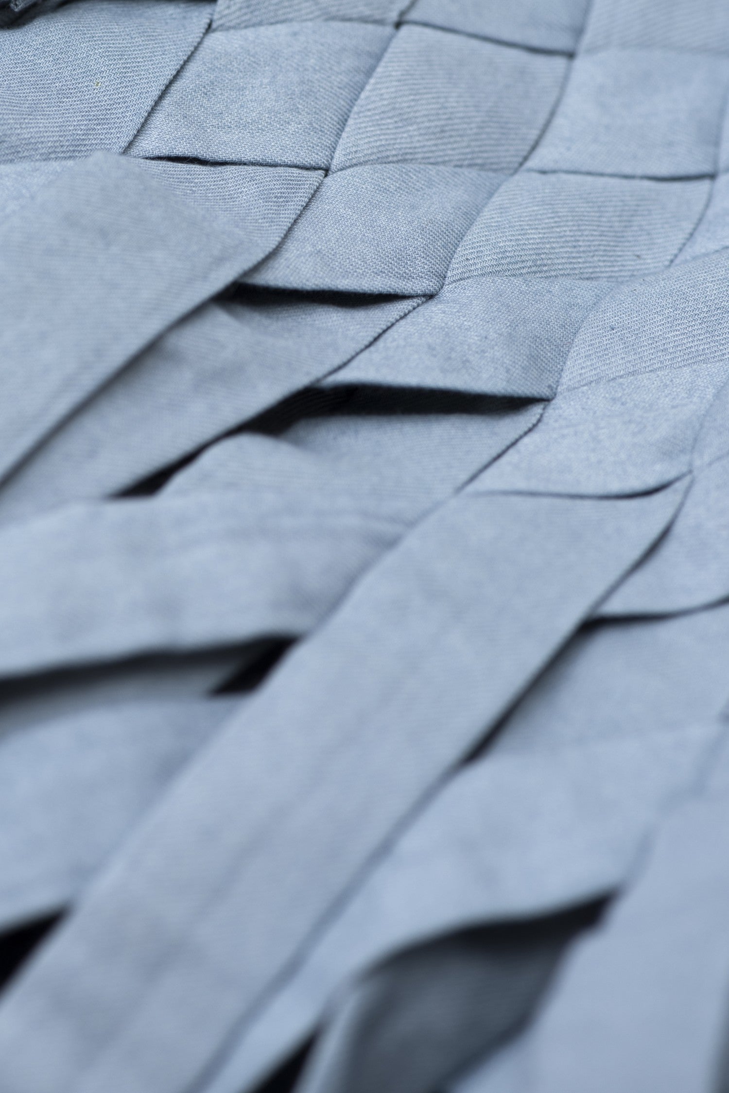 Fabric manipulation with handwoven fabric top with matching long skirt and charm detail on the side