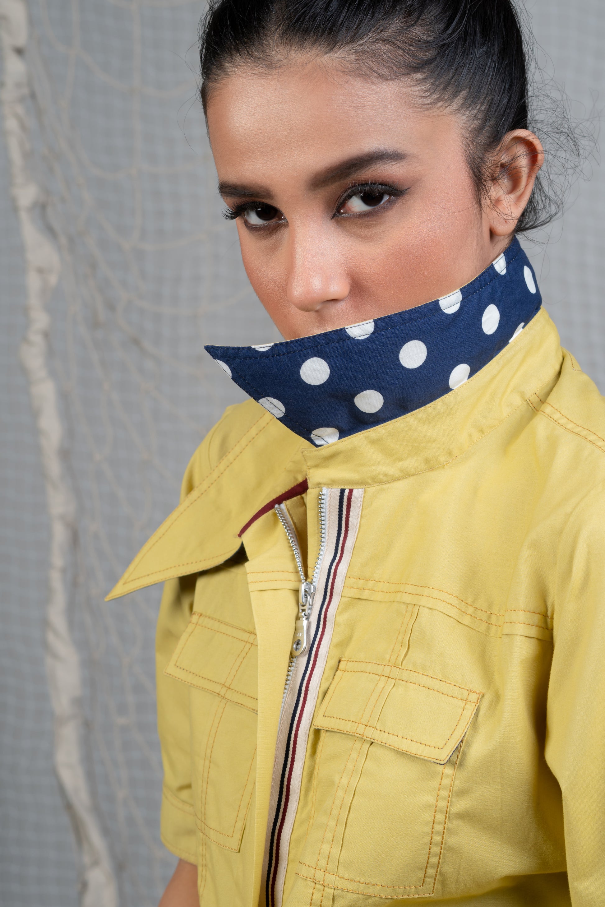 Gabardine style short Shirt, well tailored yet exceptionally easy to wear, will add a subtle utilitarian edge to daywear options with pocket & asymmetrical collar detailing