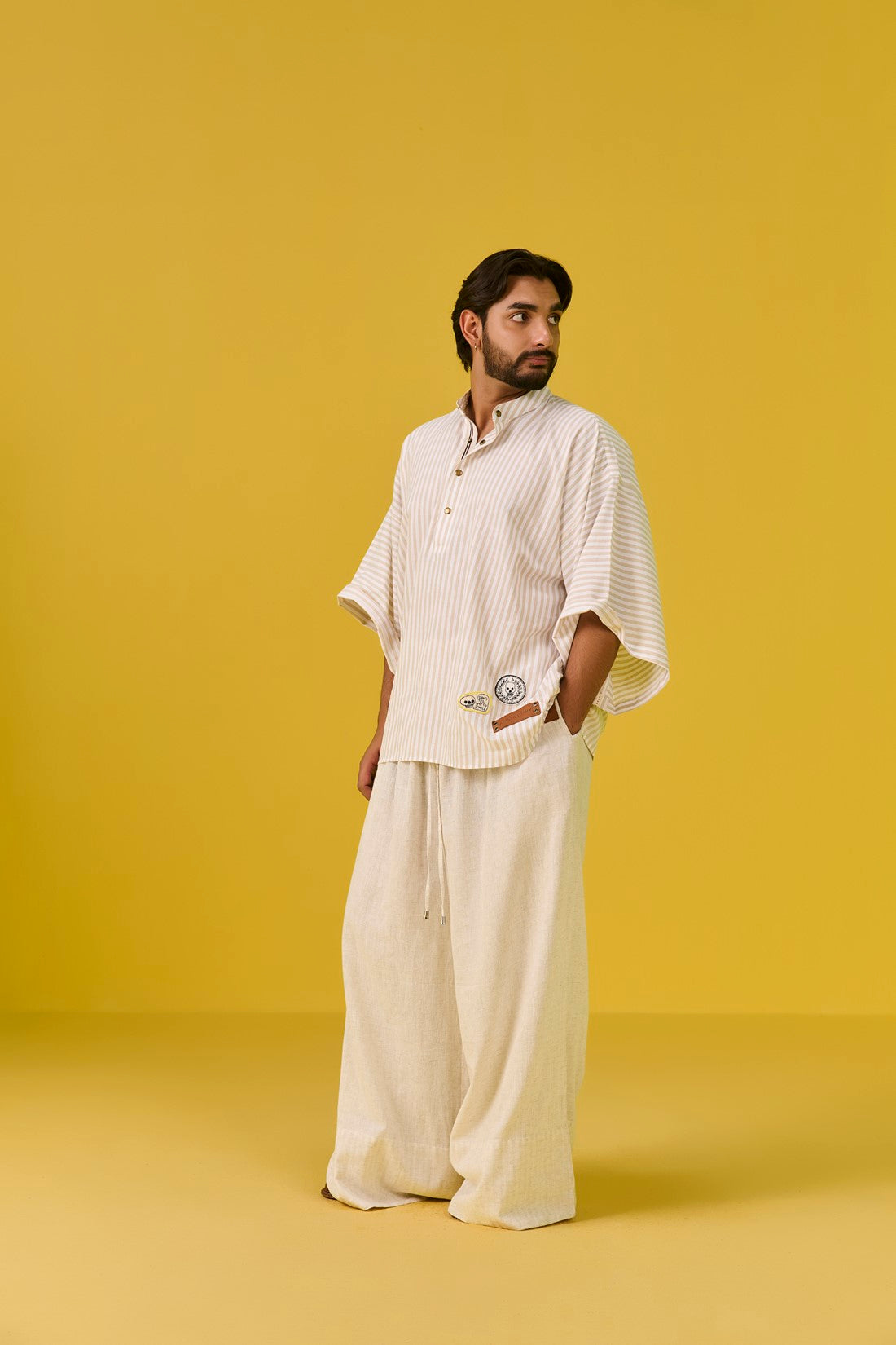 These super wide-leg linen pants are soft, structured and made to stand out. One leg is slashed with a bold lace running down the side seam. Cut with extreme volume and a fluid drape, they’re grounded by a no-fuss elastic waistband with drawstrings and in-seam pouch pockets.