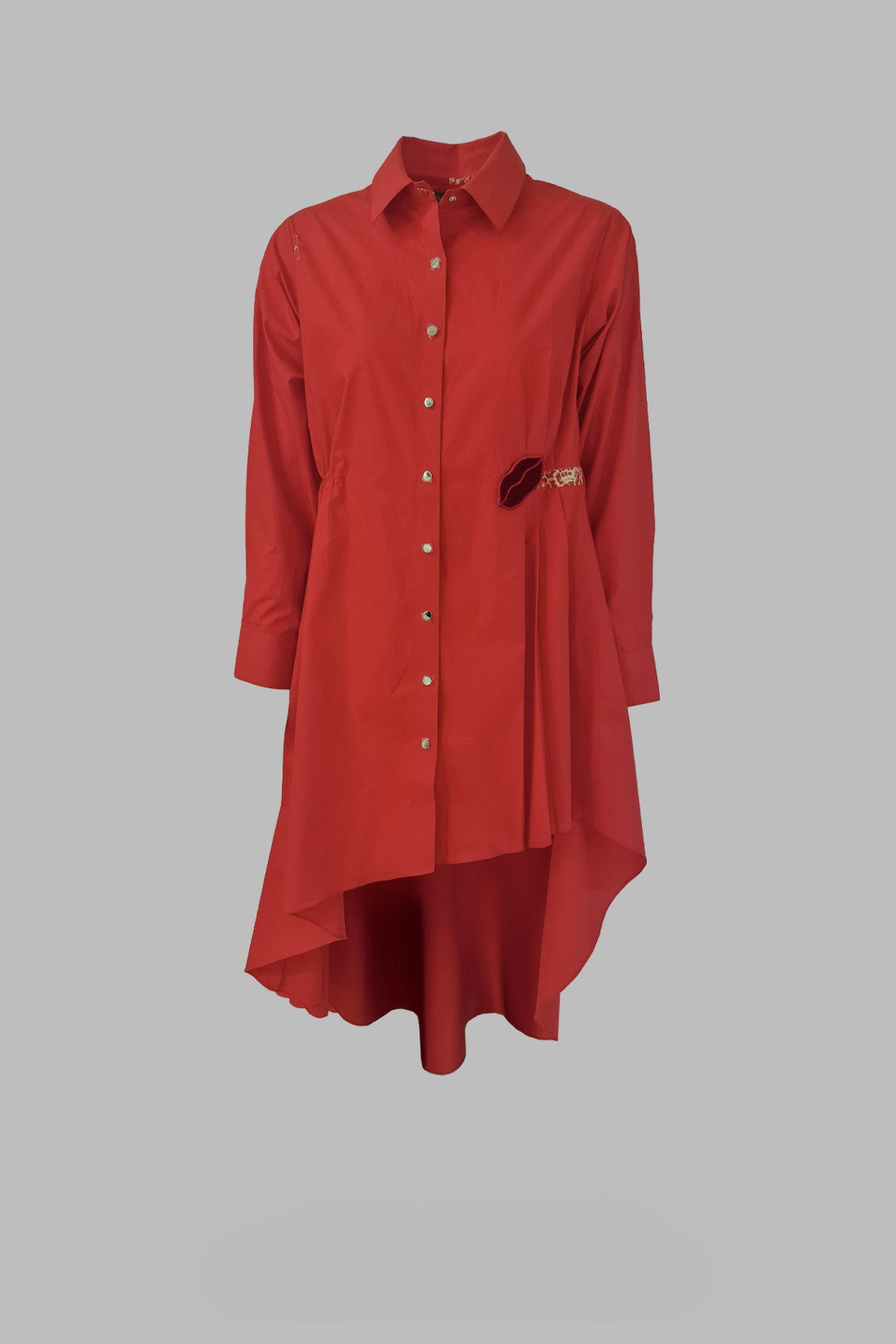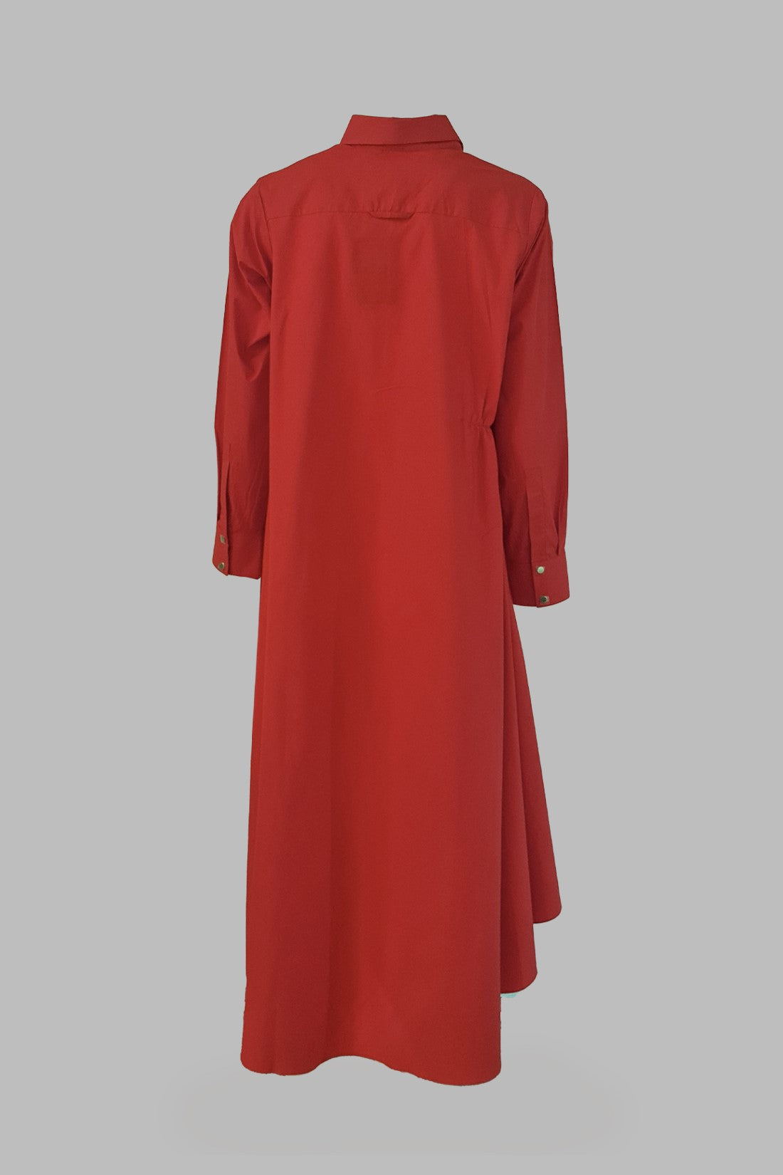 - Asymmetrical shirt dress with a shorter front and longer back