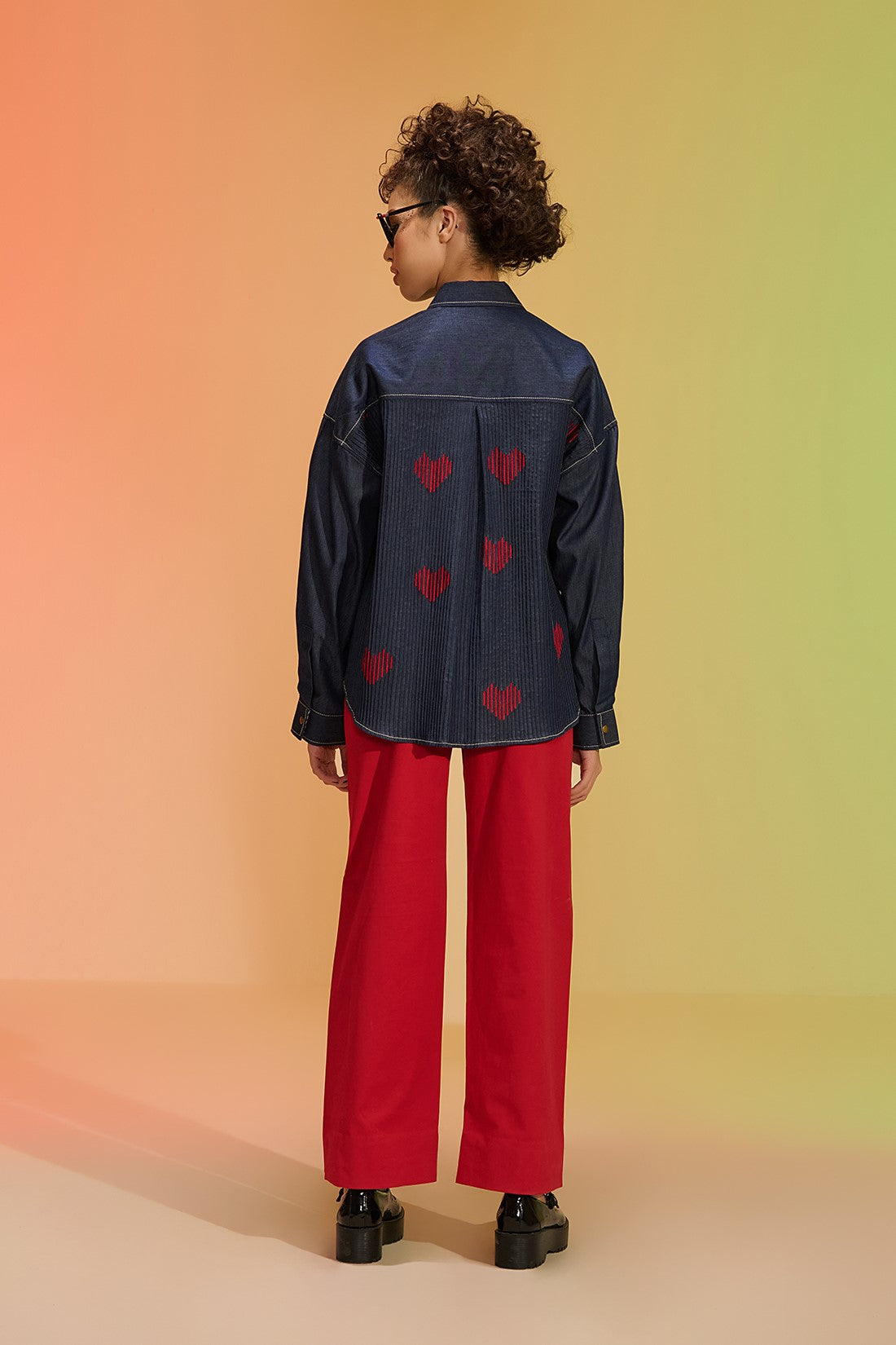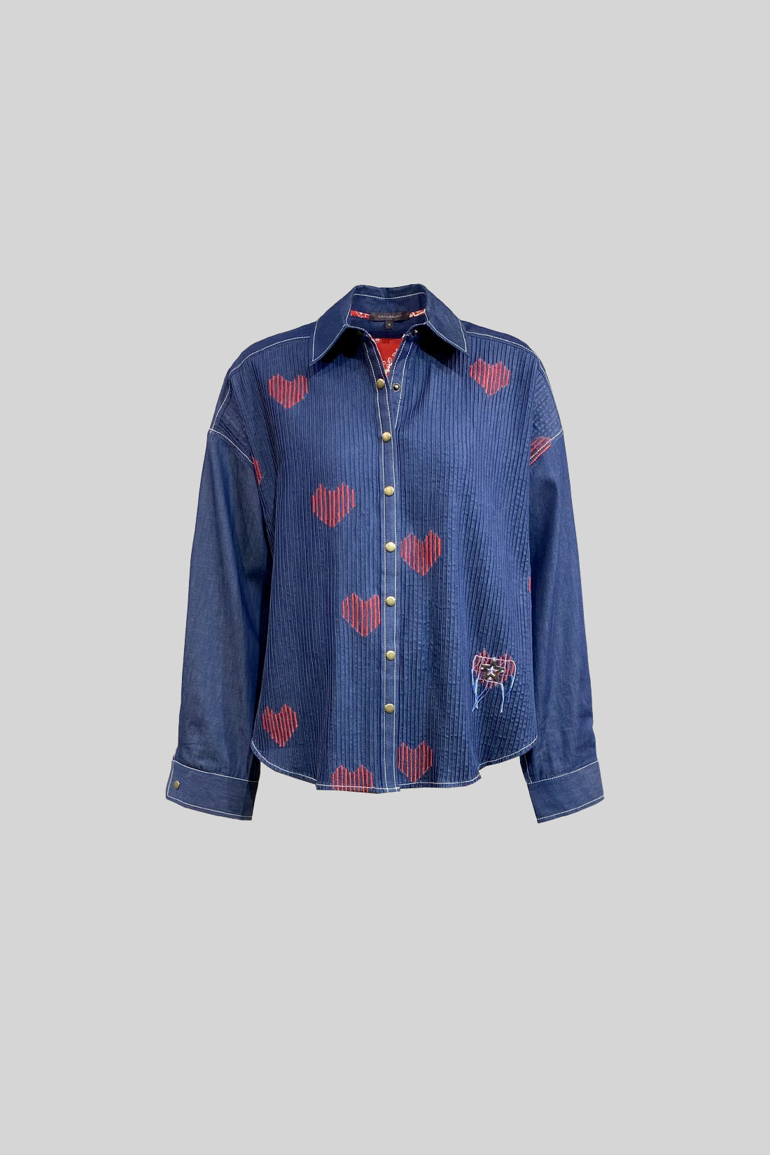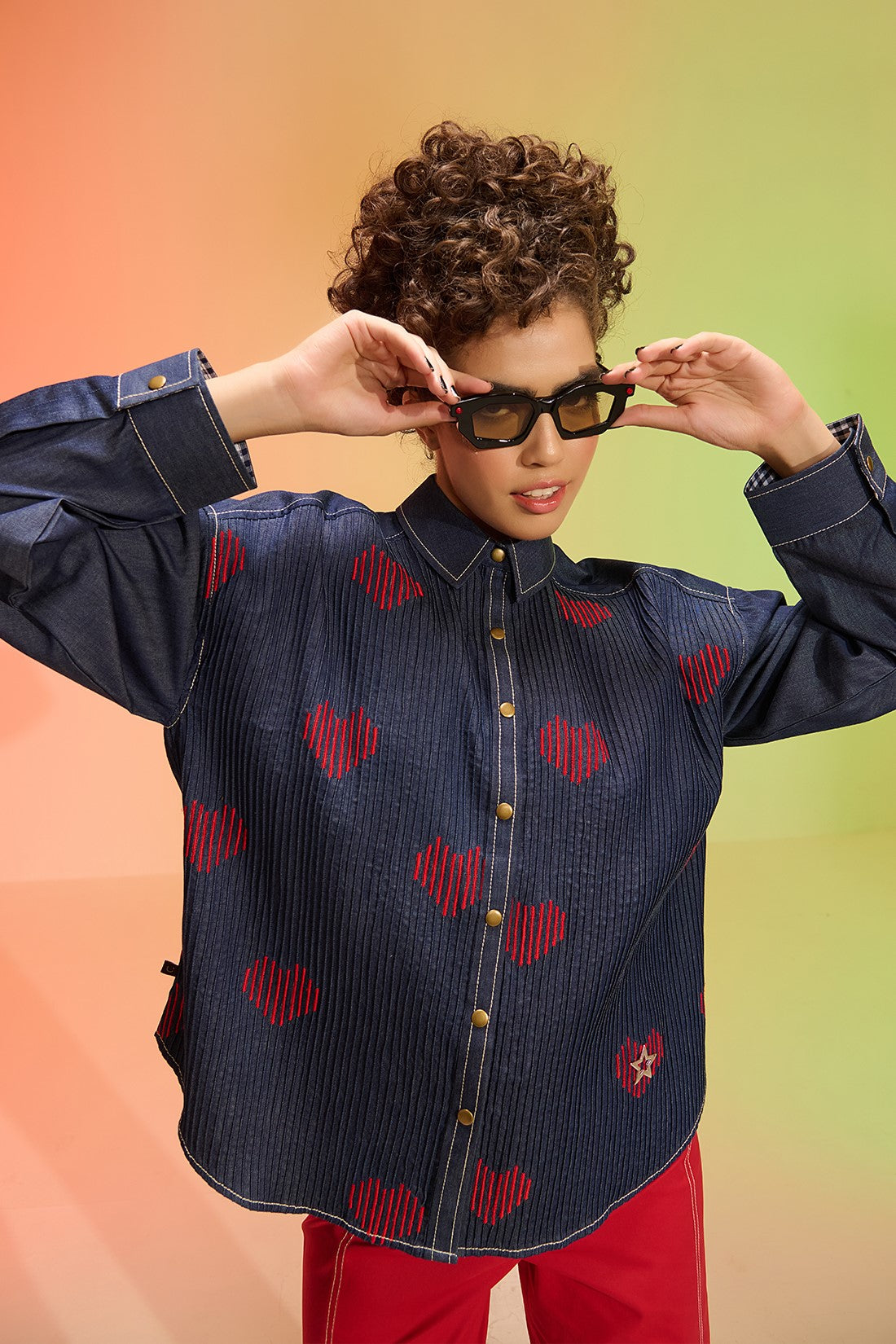 This heart throbbing, relaxed fit shirt is sure to win hearts. Featuring intricate pintuck detailing and heart embroidery on the front and back bodice.