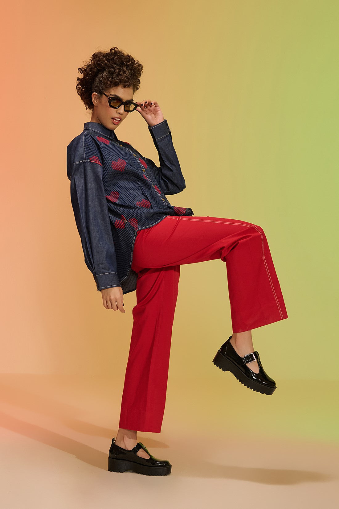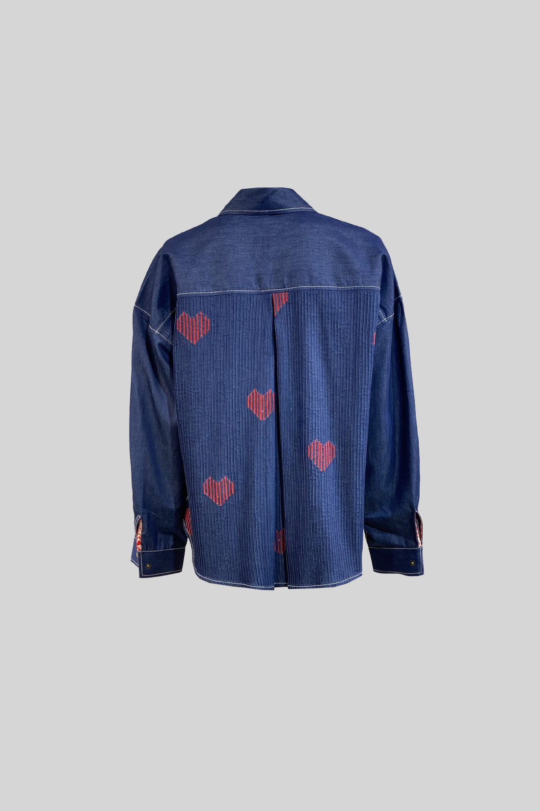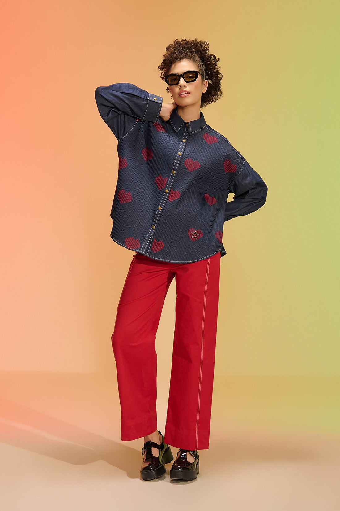 This heart throbbing, relaxed fit shirt is sure to win hearts. Featuring intricate pintuck detailing and heart embroidery on the front and back bodice.