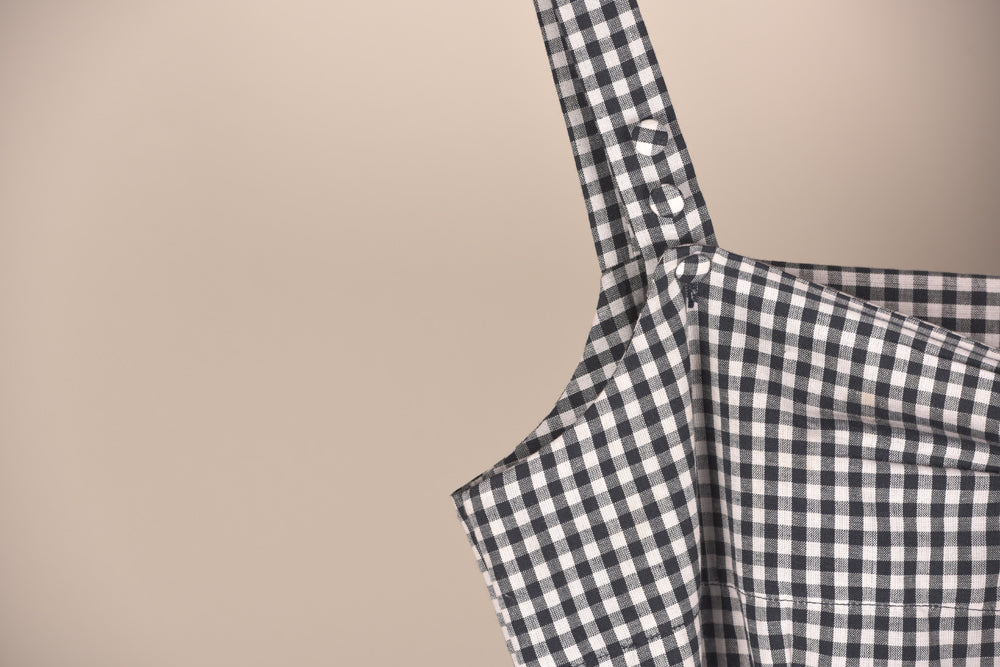 • Mid length dress in check facing details