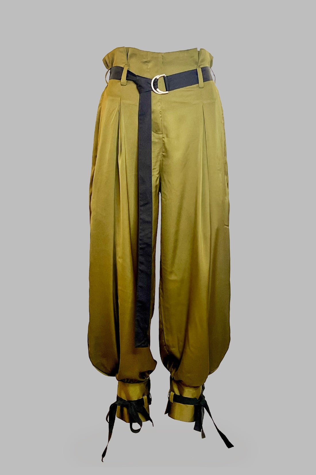 High-waisted pleated pants in luxurious Japanese satin, paired with a cotton silk