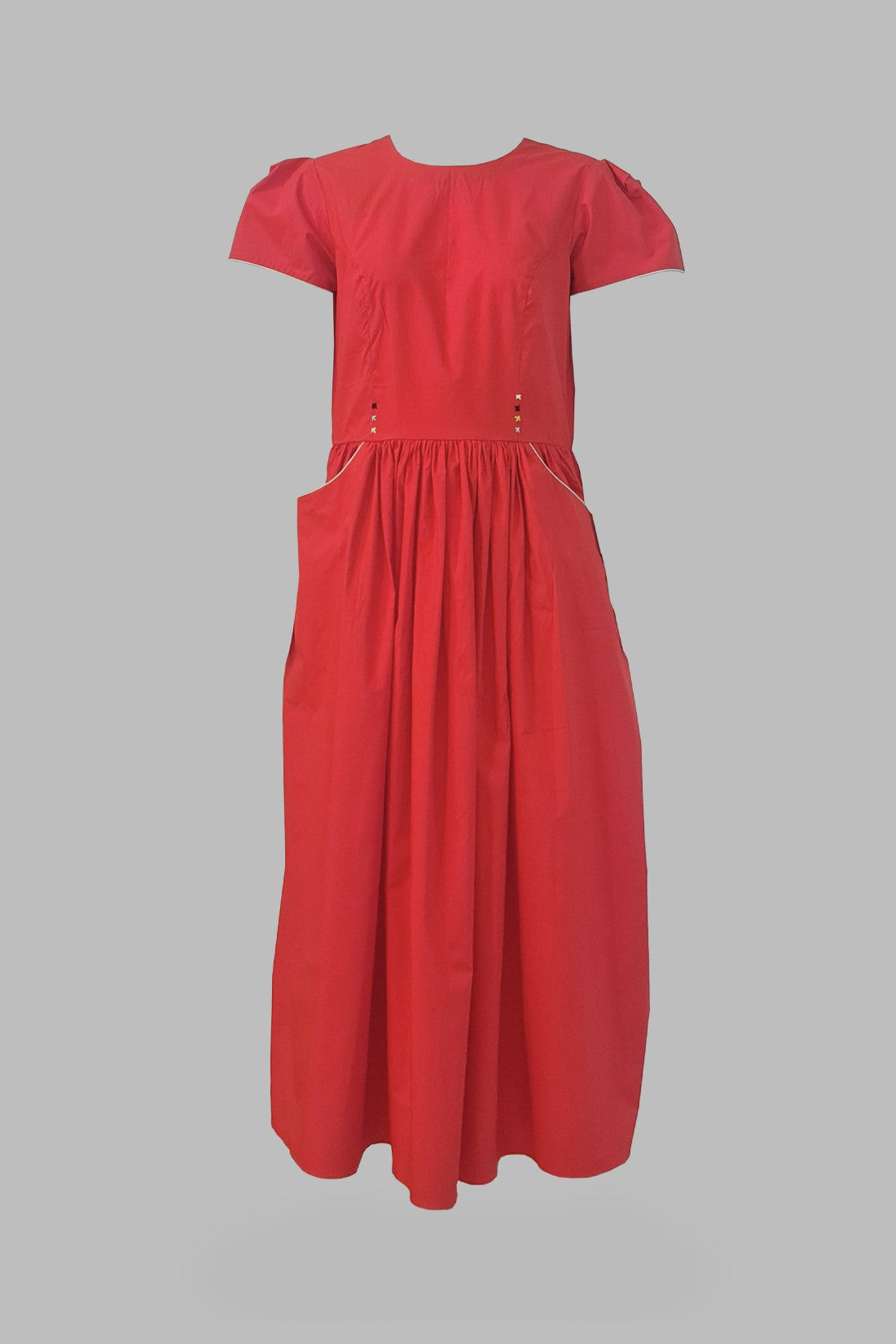 Long relaxed fit dress with box shoulder sleeve and large side pockets